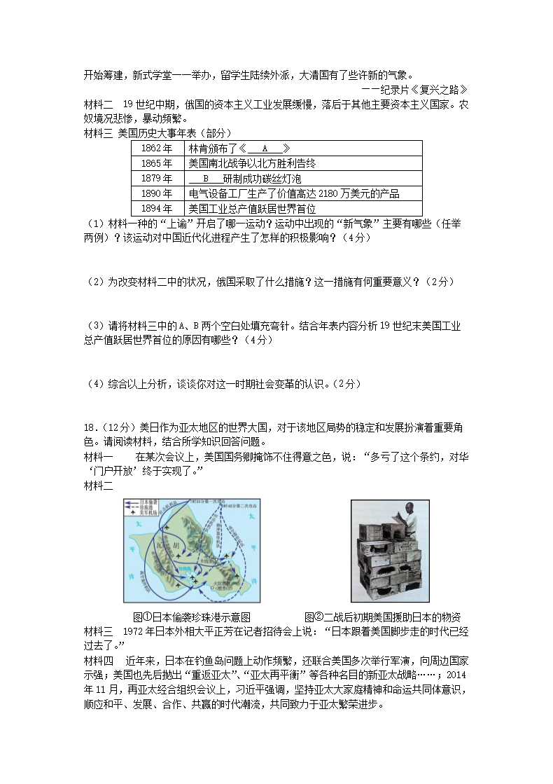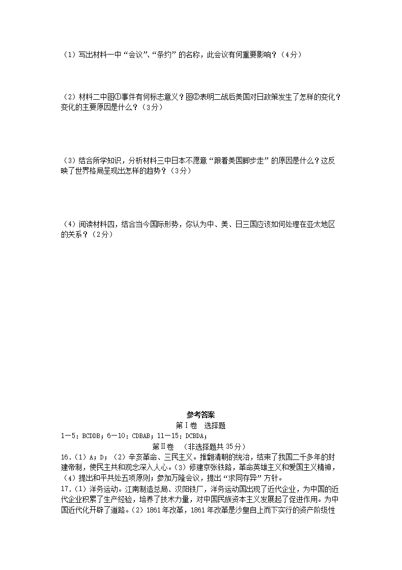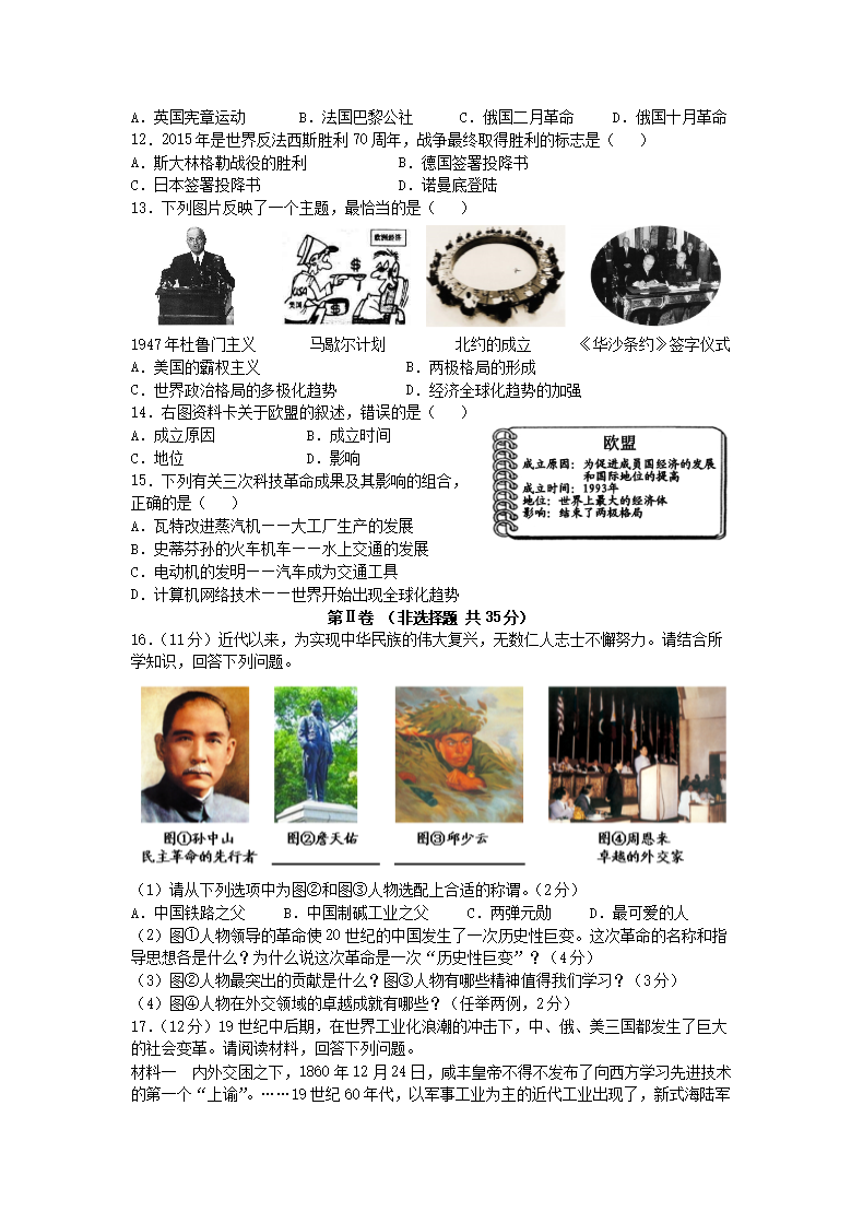 【文档名称】 2015山东省淄博市中考历史真题及答案(Word版).doc