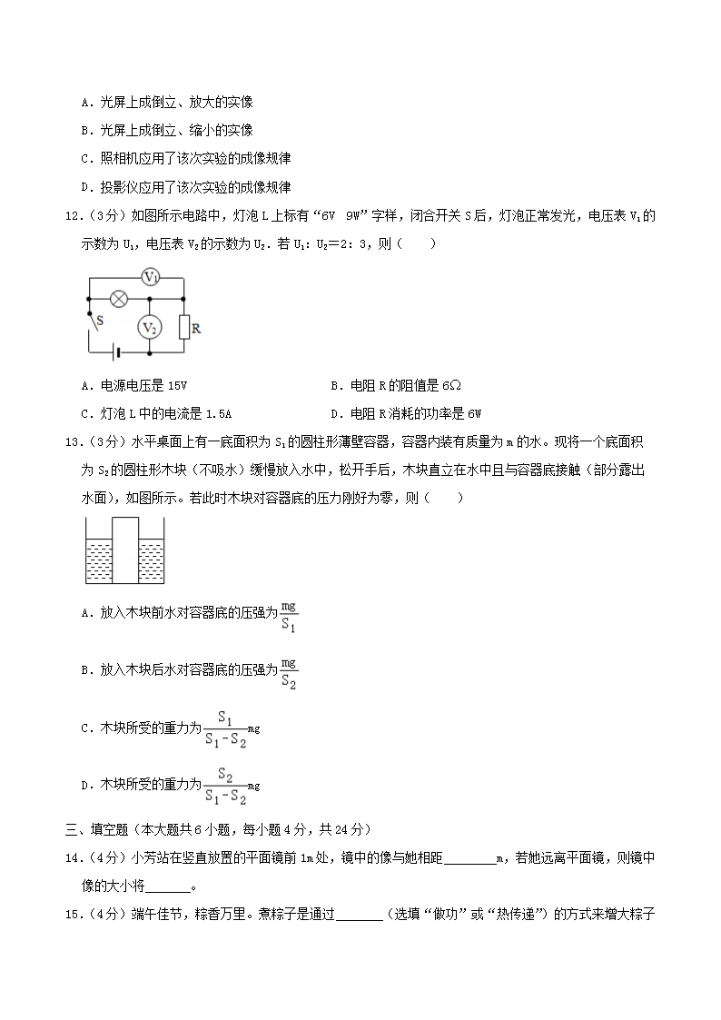 【文档预览】 无忧考网整理发布2020天津北辰中考物理真题及答案(Word版),前五页预览如下: