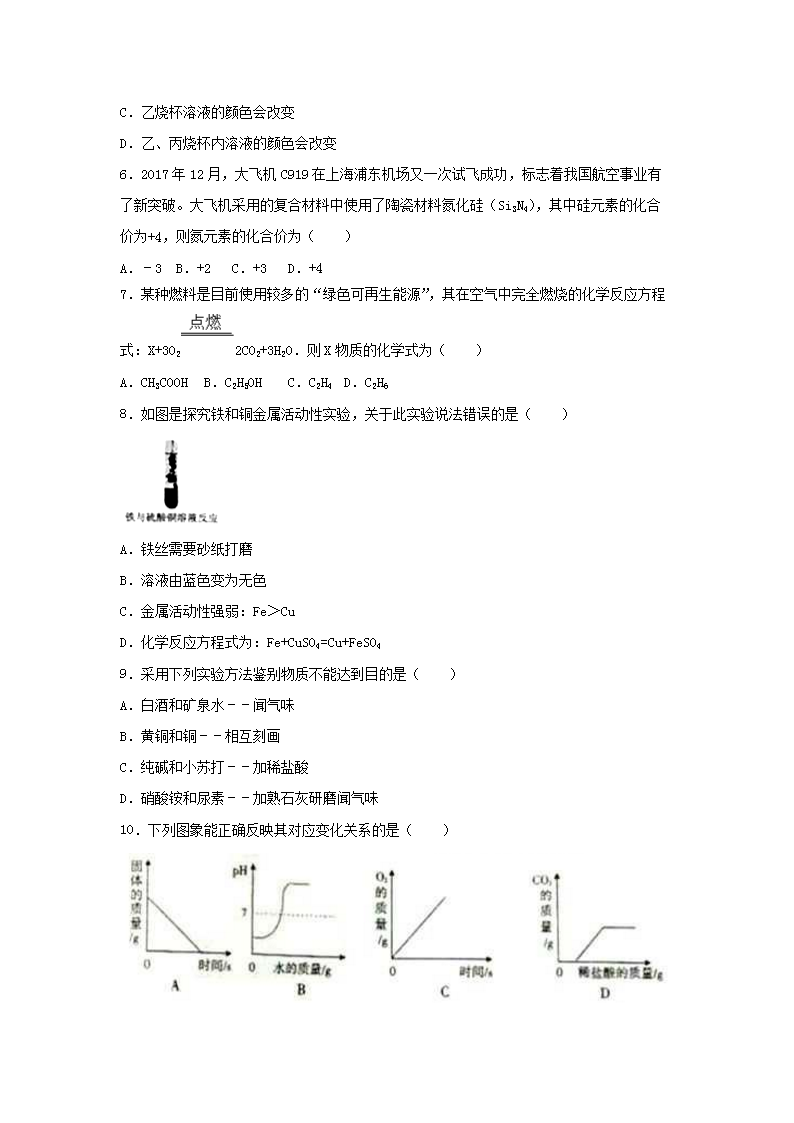 【文档名称】 2018年新疆兵团中考化学真题及答案(Word版).doc