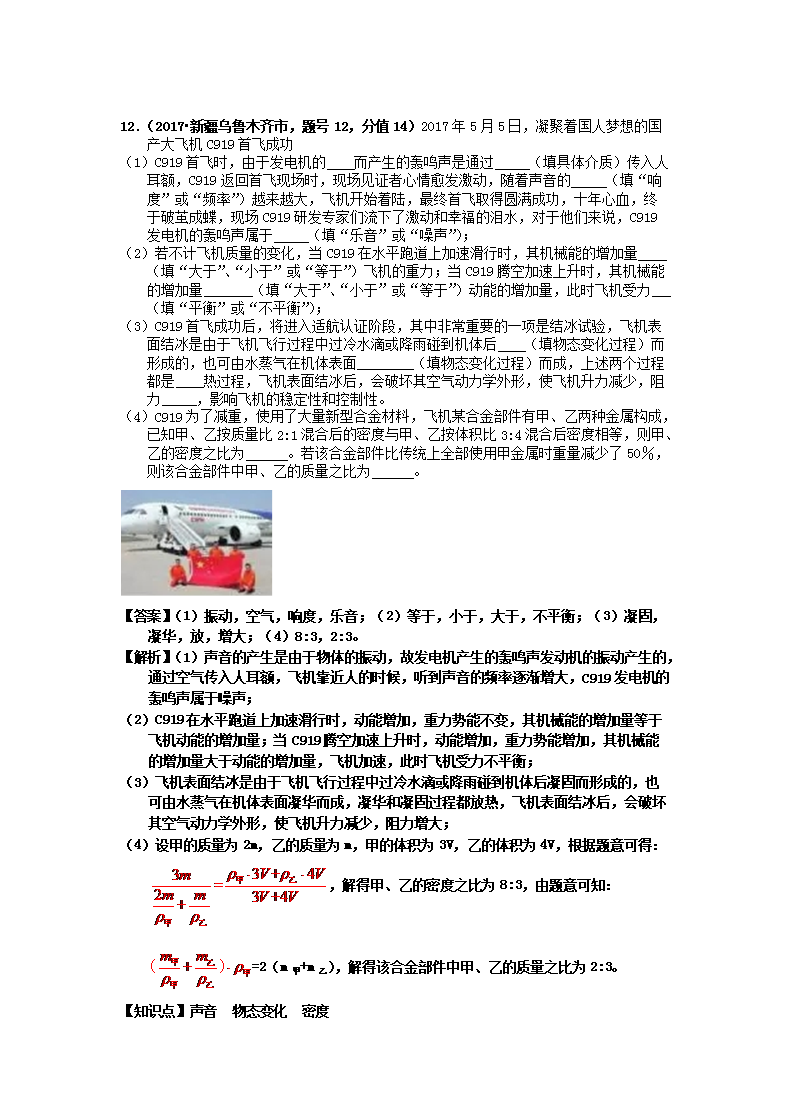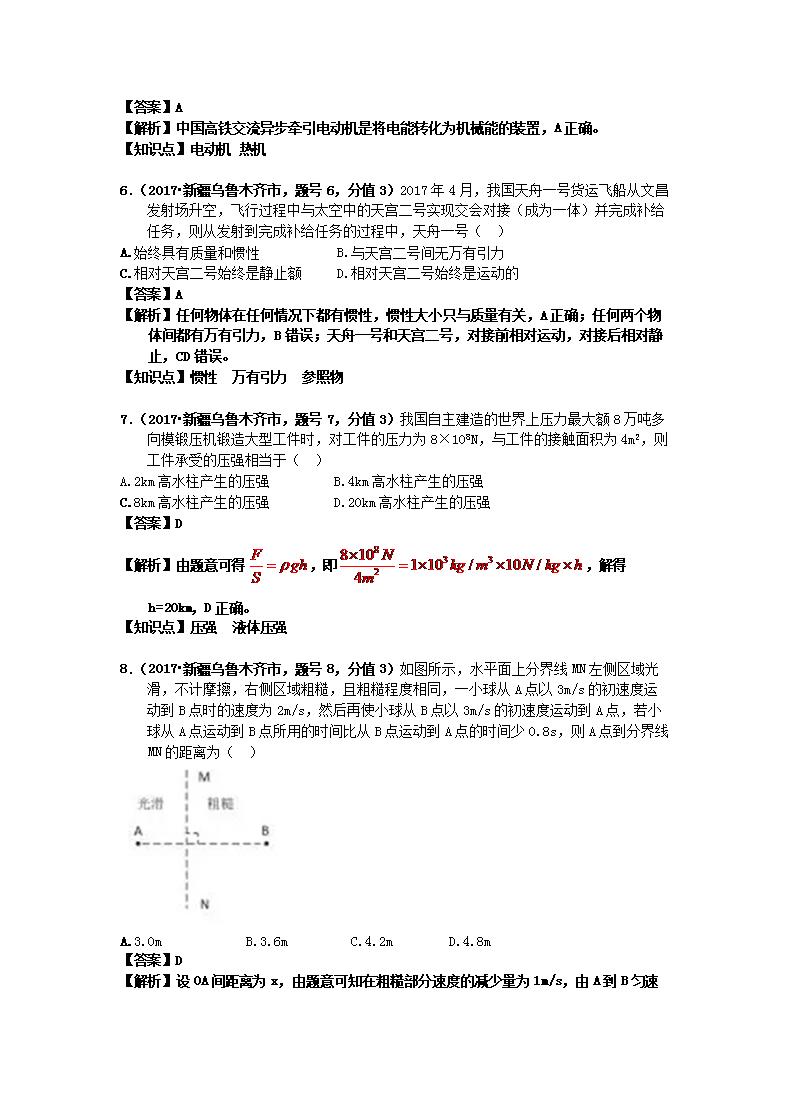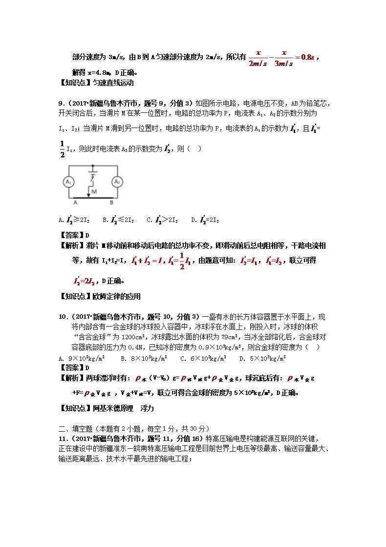 【文档预览】 无忧考网整理发布2017年新疆乌鲁木齐中考物理真题及答案(Word版),前五页预览如下: