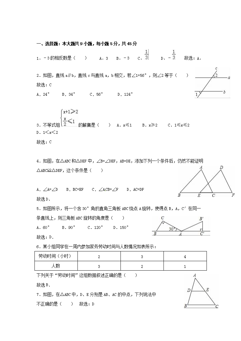 【文档名称】 2016年新疆兵团中考数学真题及答案(Word版).doc
