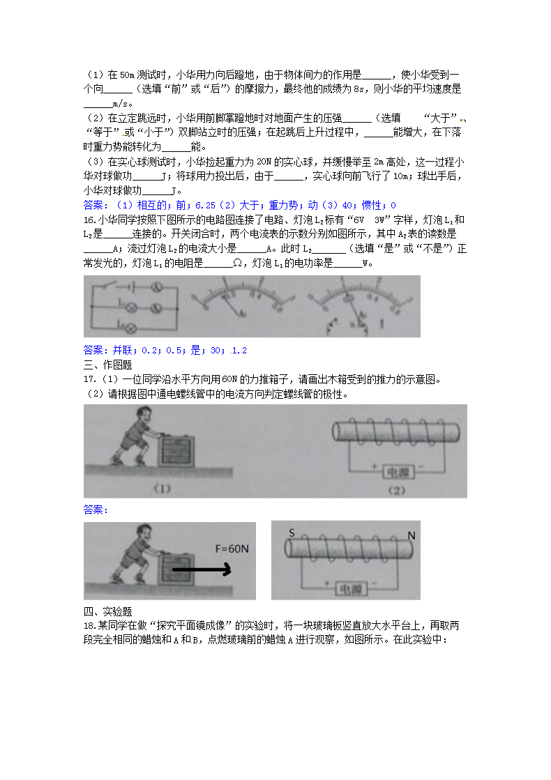 【文档名称】 2016年新疆兵团中考物理真题及答案(Word版).doc