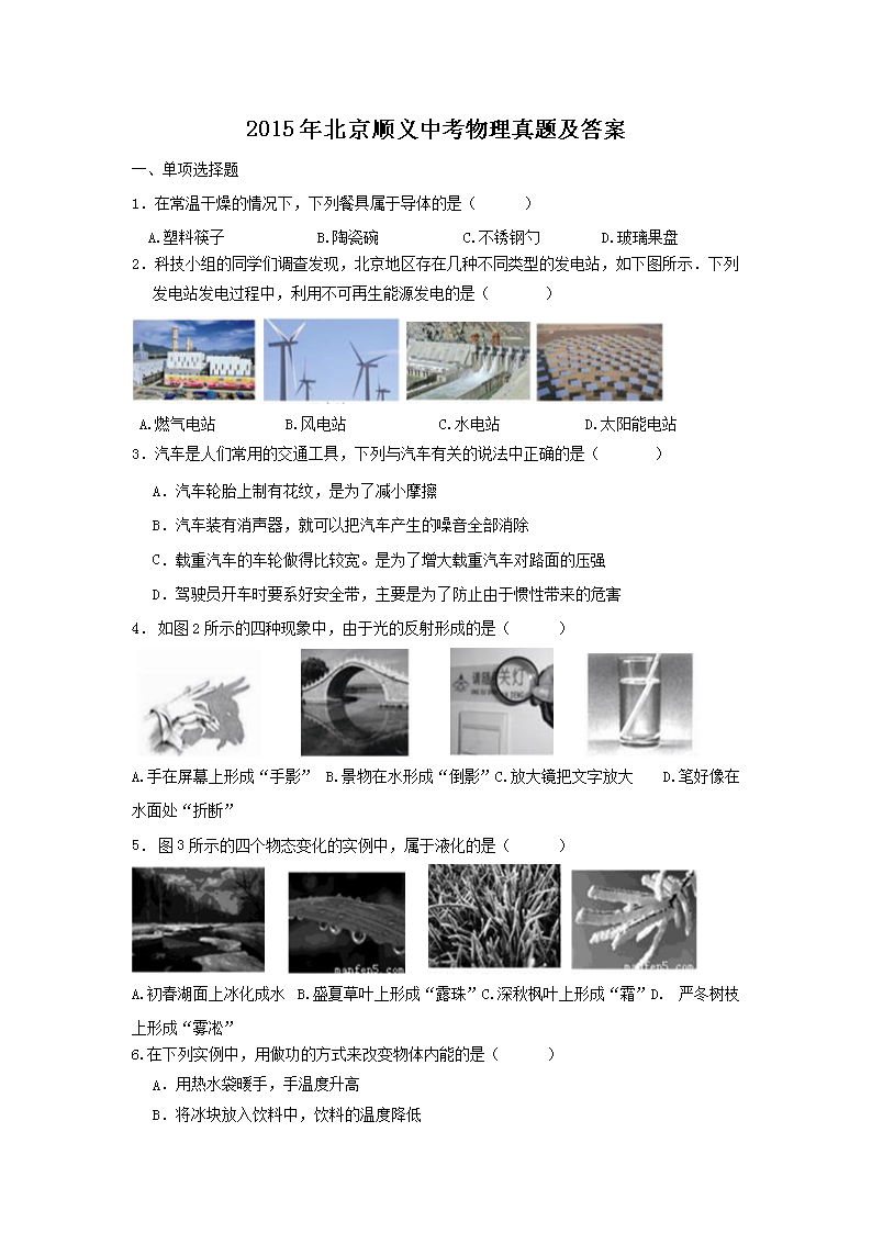 【文档名称】 2015年北京顺义中考物理真题及答案(Word版).doc
