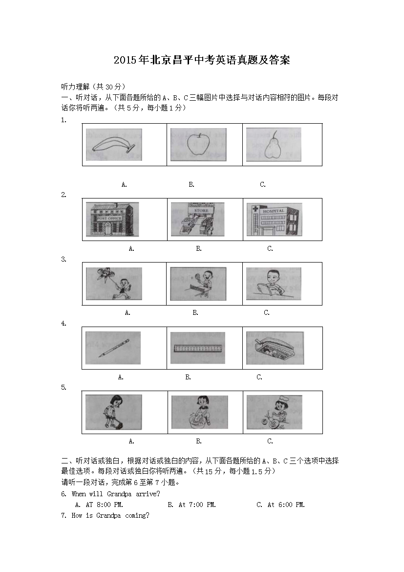 【文档名称】 2015年北京昌平中考英语真题及答案(Word版).doc