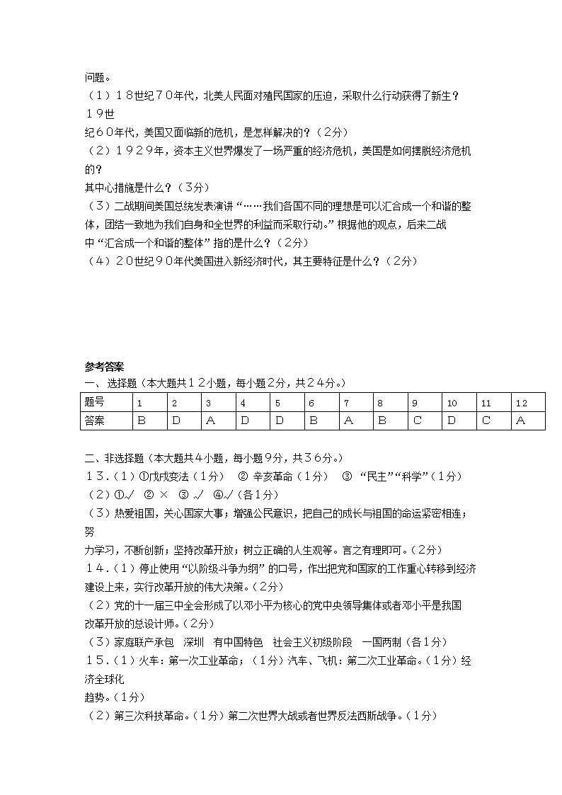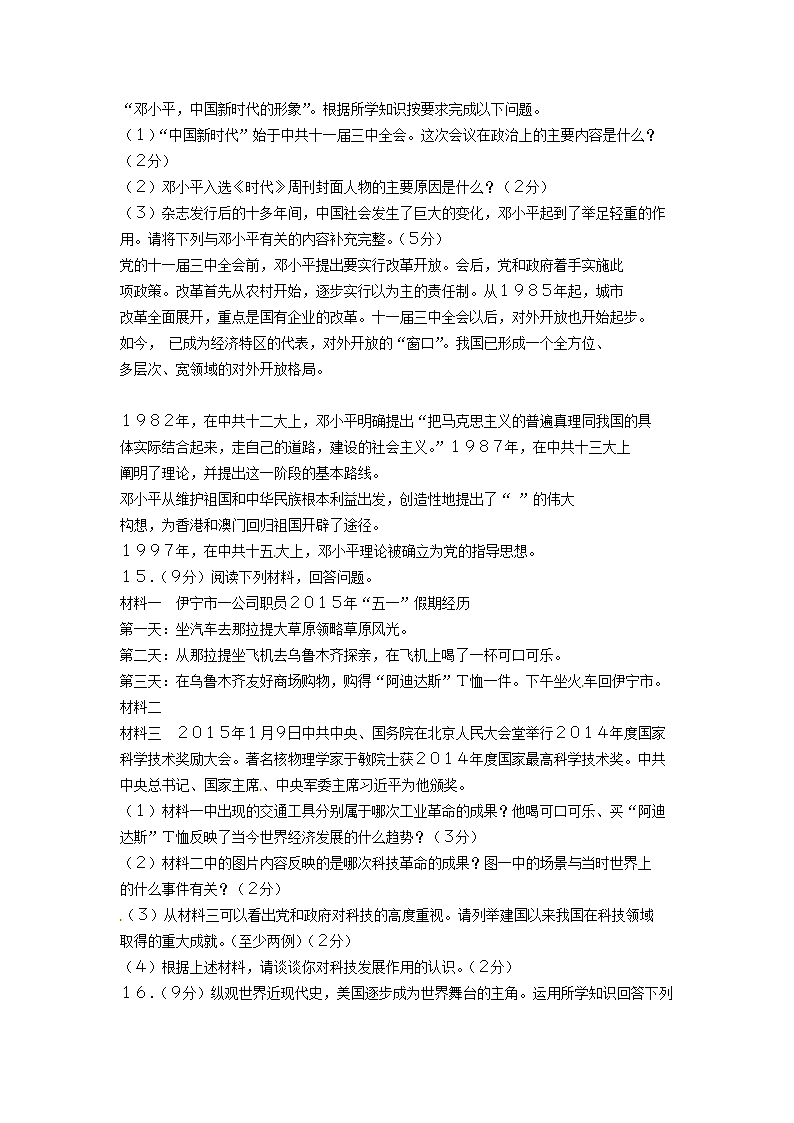 【文档名称】 2015年新疆兵团中考历史真题及答案(Word版).doc
