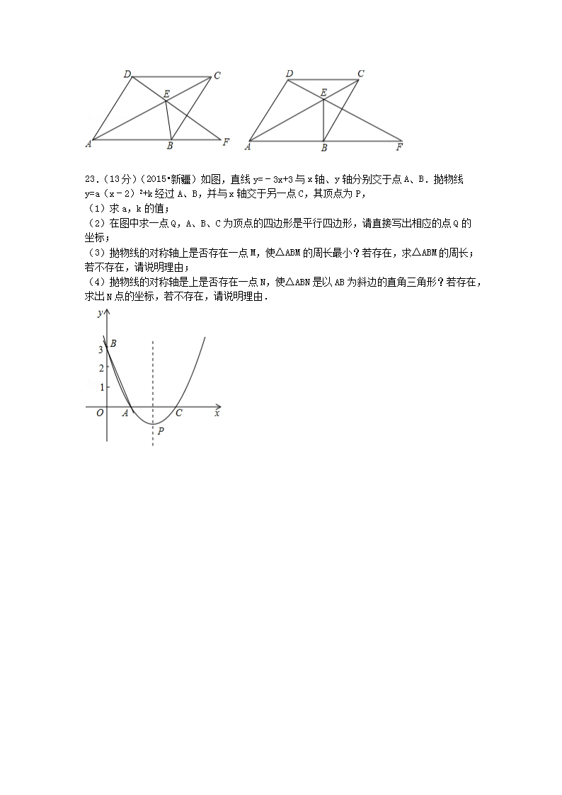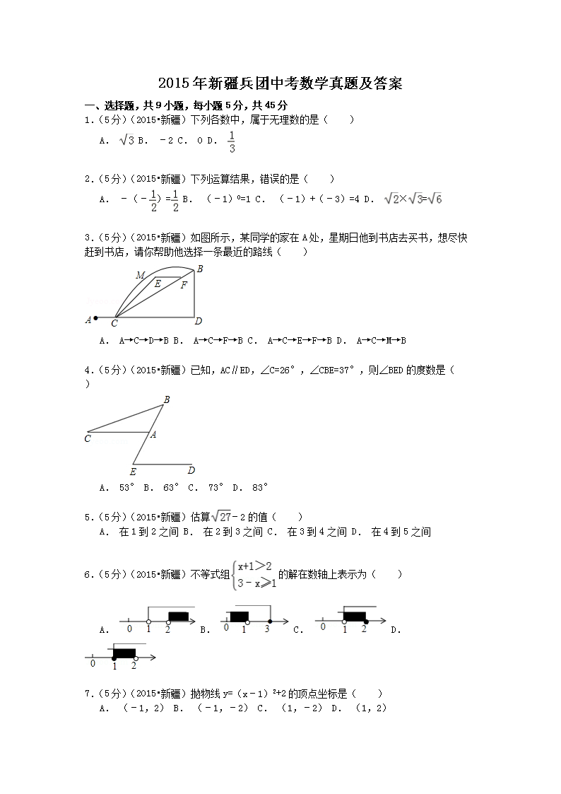 【文档名称】 2015年新疆兵团中考数学真题及答案(Word版).doc