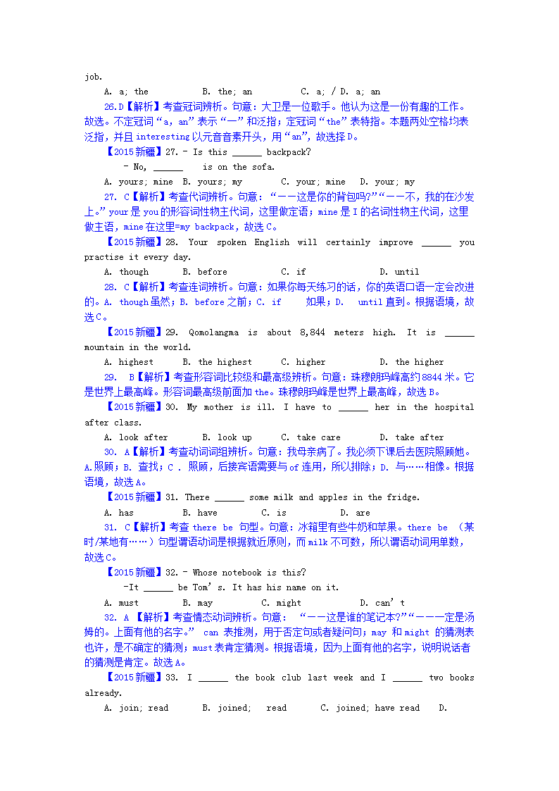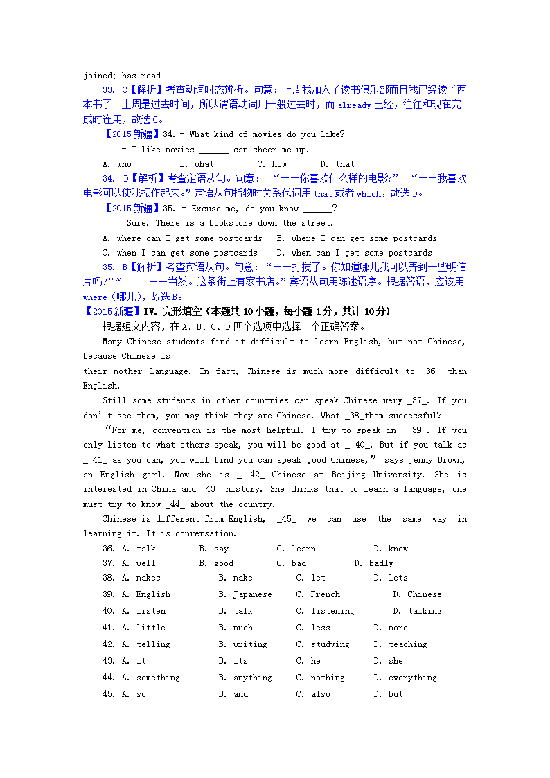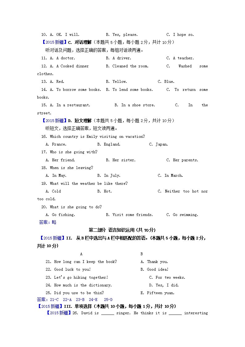 【文档名称】 2015年新疆兵团中考英语真题及答案(Word版).doc