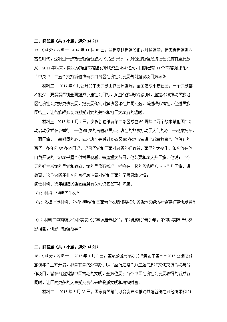 【文档预览】 无忧考网整理发布2015年新疆乌鲁木齐中考道德与法治真题及答案(Word版),前五页预览如下: