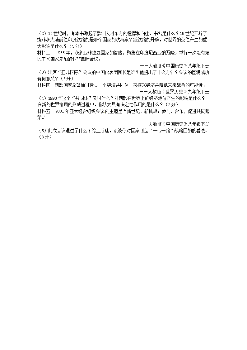 【文档预览】 无忧考网整理发布2015年新疆乌鲁木齐中考历史真题及答案(Word版),前五页预览如下: