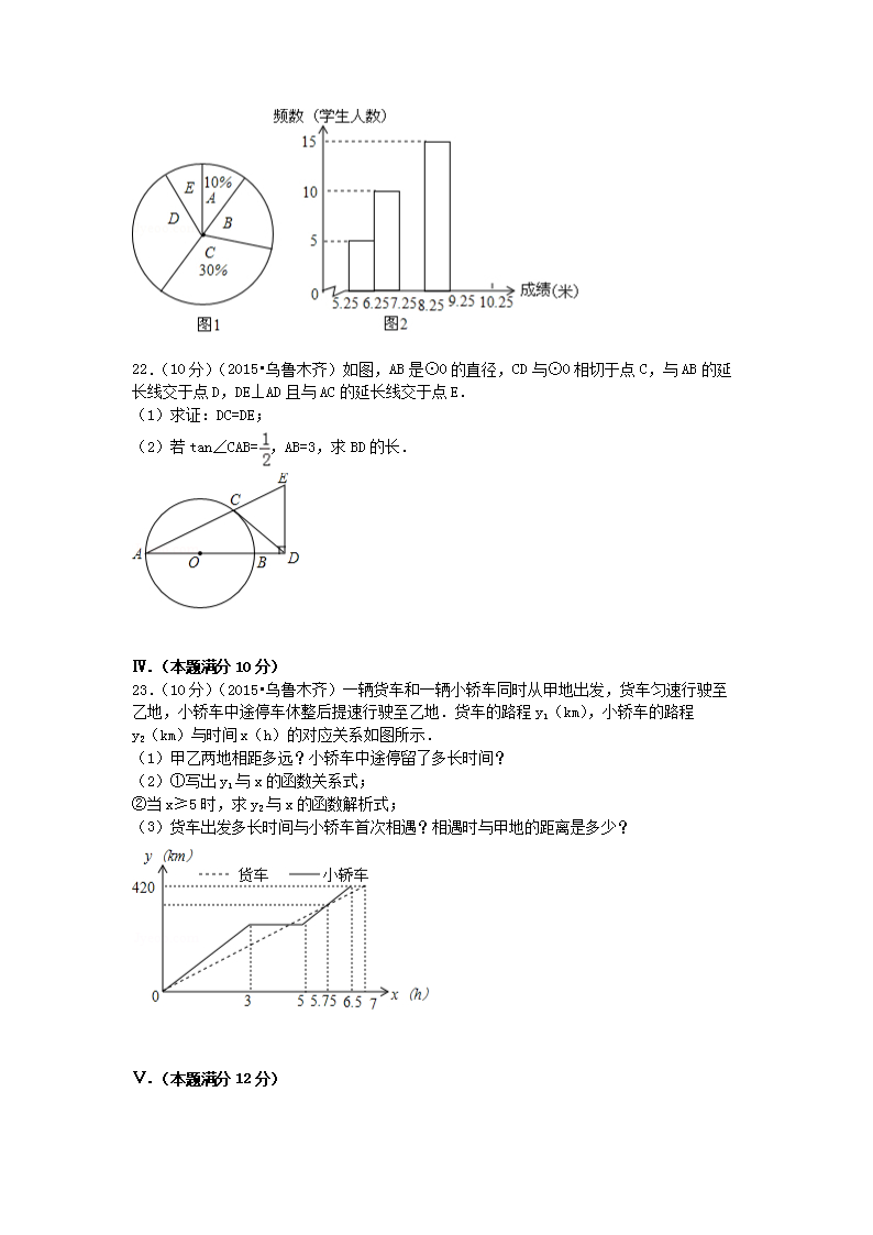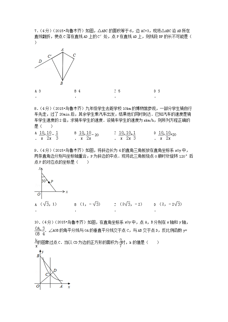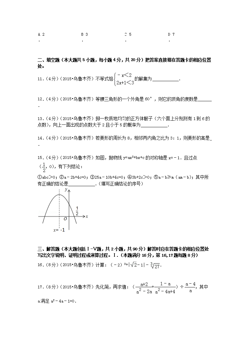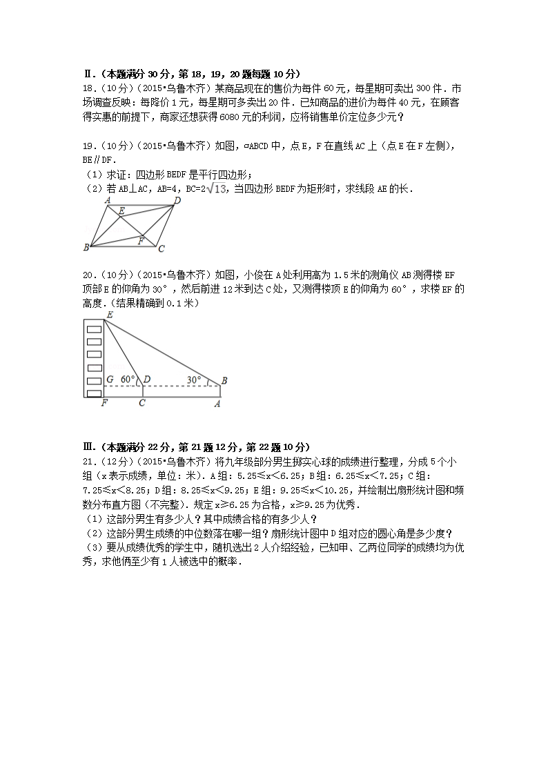 【文档名称】 2015年新疆乌鲁木齐中考数学真题及答案(Word版).doc