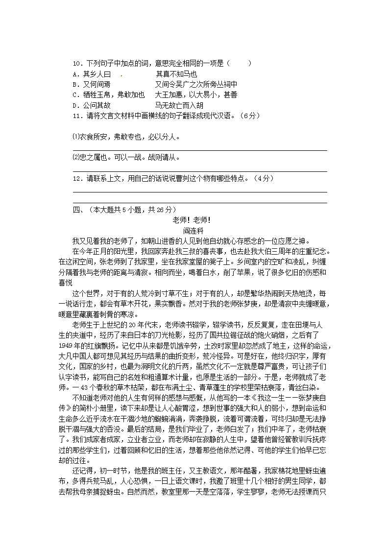 【文档预览】 无忧考网整理发布2015年新疆乌鲁木齐中考语文真题及答案(Word版),前五页预览如下: