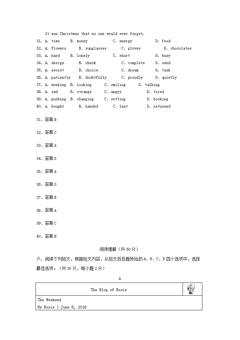 【文档名称】 2016年北京密云中考英语真题及答案(Word版).doc