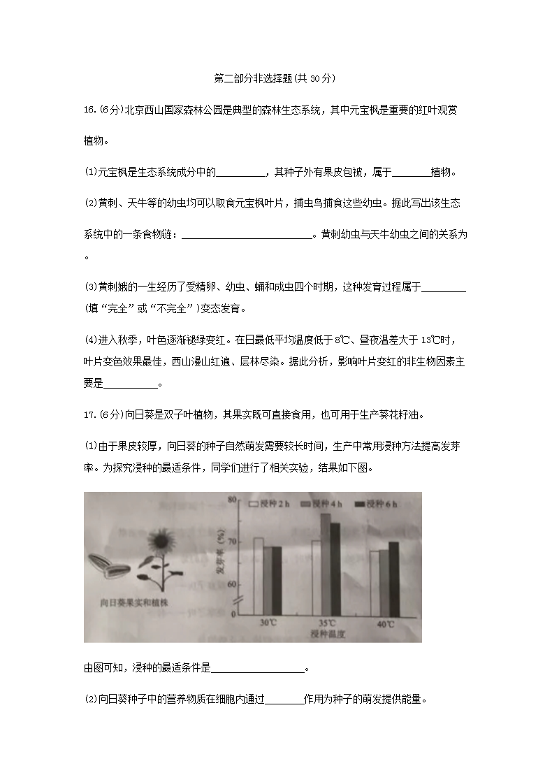 【文档名称】 2018年北京崇文中考生物真题及答案(Word版).doc