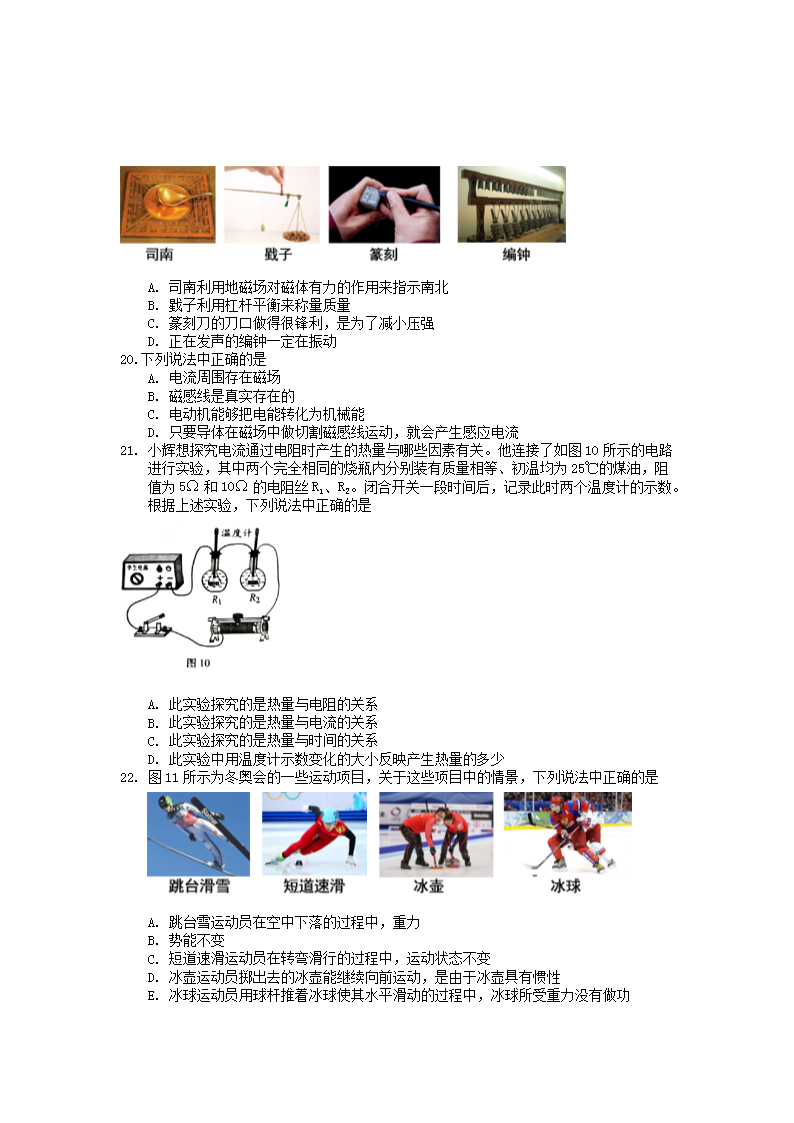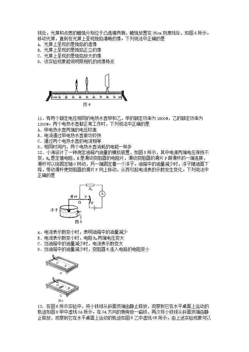 【文档名称】 2018年北京密云中考物理真题及答案(Word版).doc