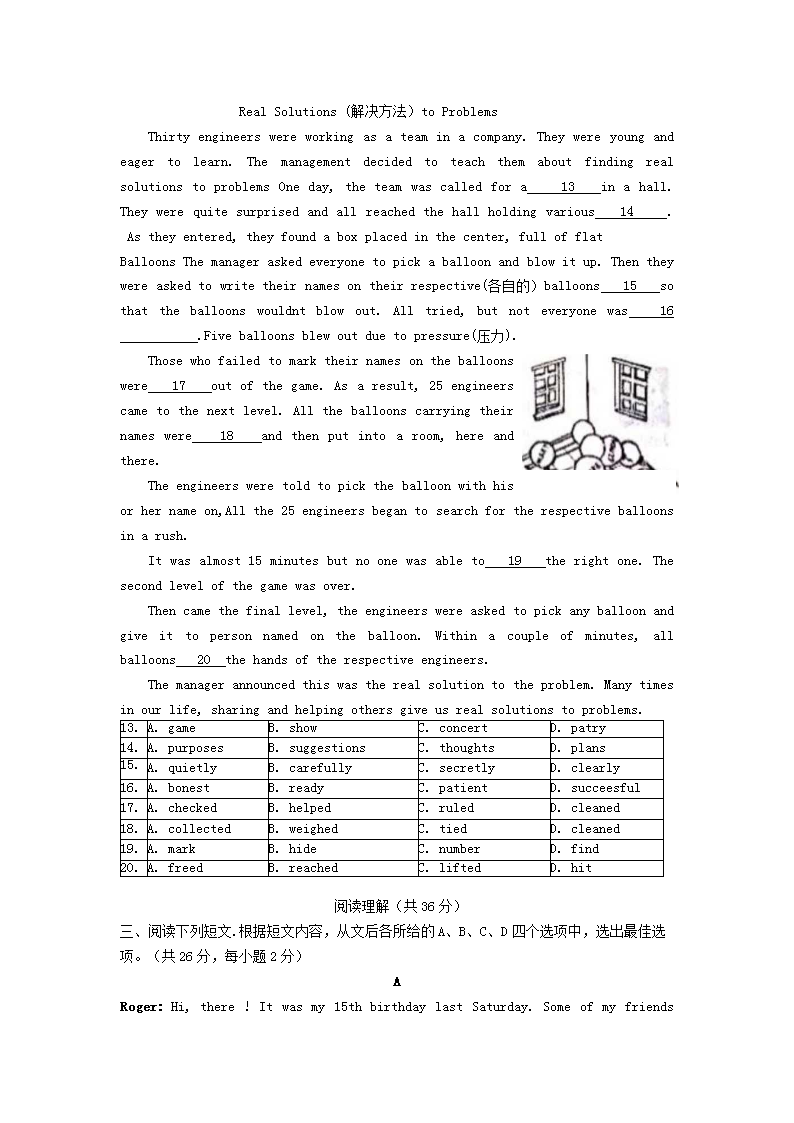 【文档预览】 无忧考网整理发布2018年北京通州中考英语真题及答案(Word版),前五页预览如下:
