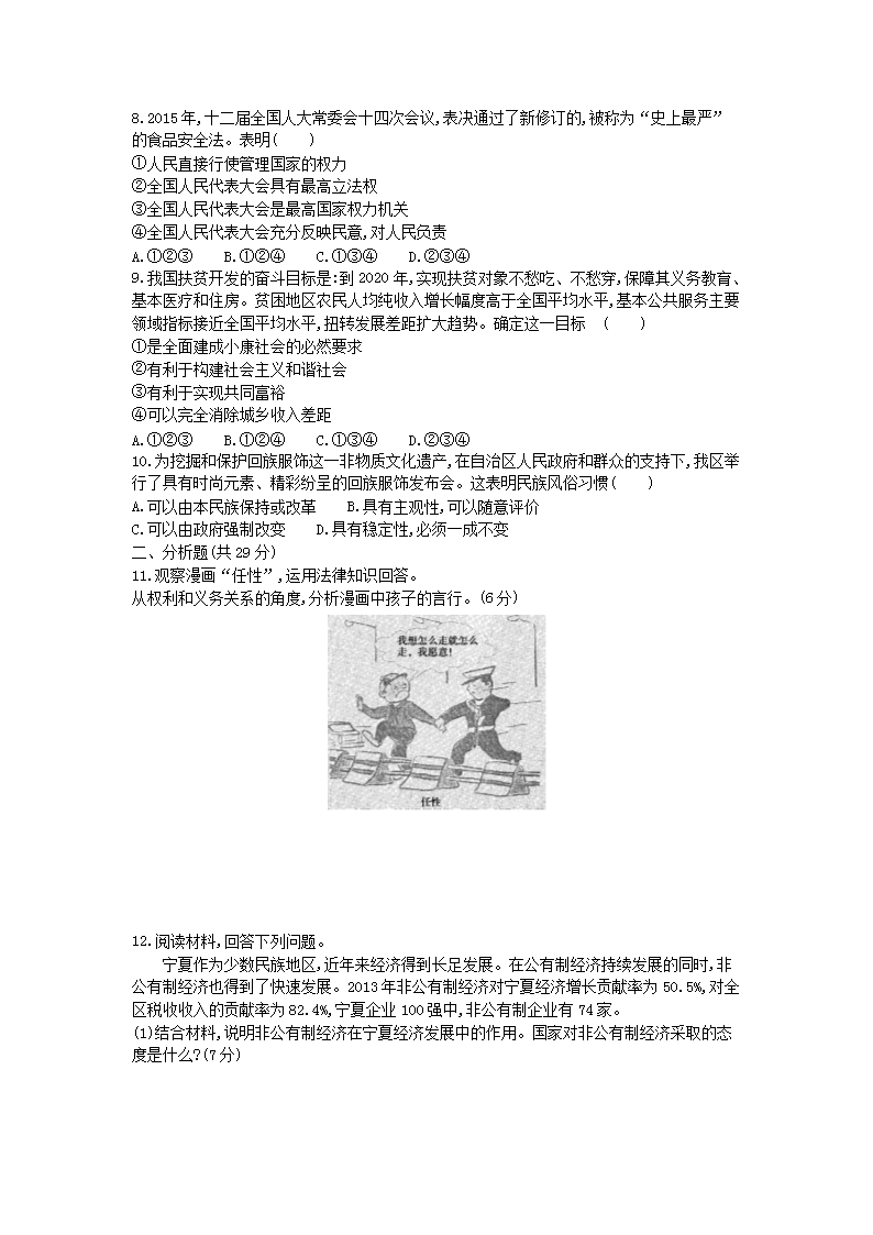 【文档名称】 2015年宁夏固原中考道德与法治真题及答案(Word版).doc