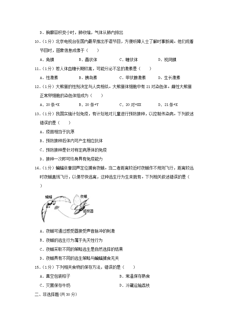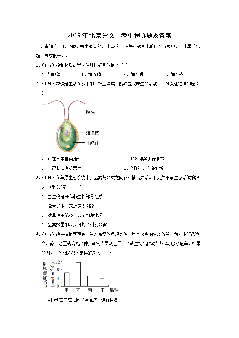 【文档预览】 无忧考网整理发布2019年北京崇文中考生物真题及答案(Word版),前五页预览如下: