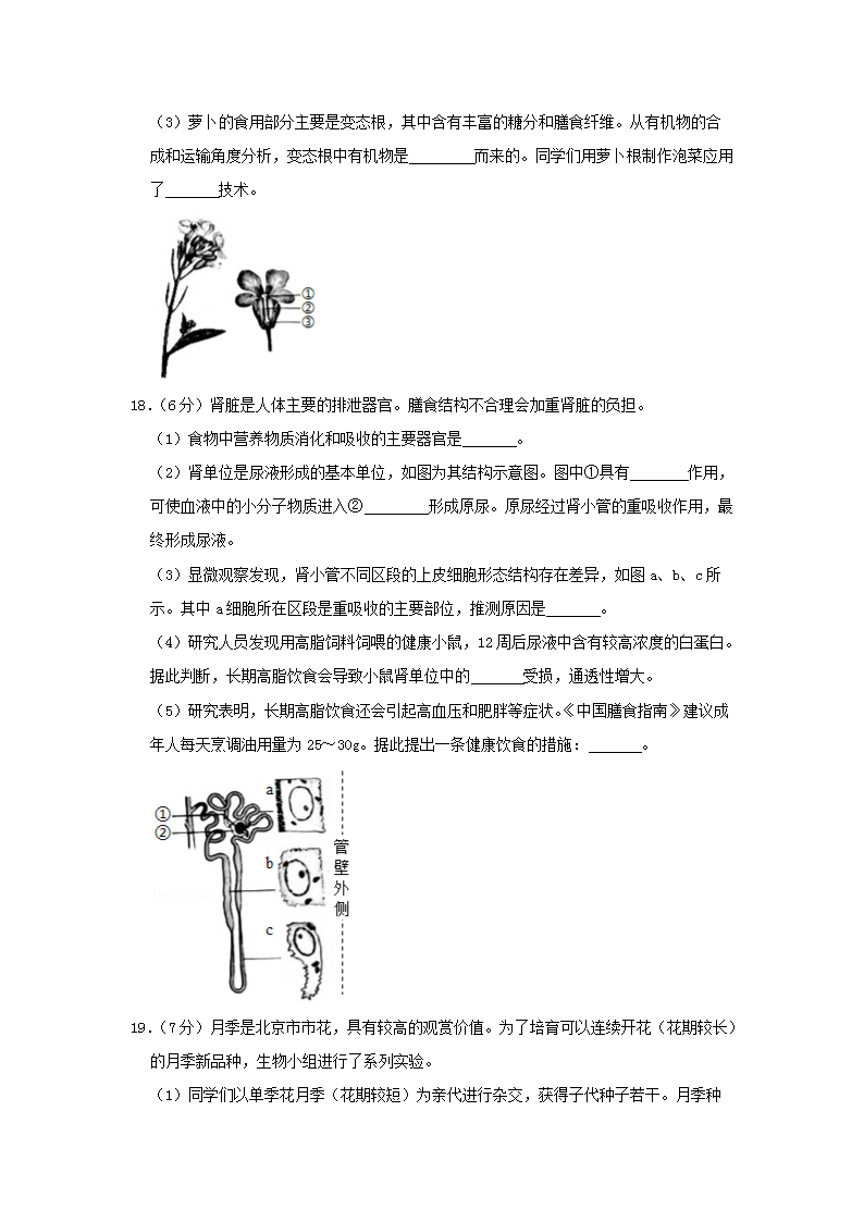 【文档名称】 2019年北京崇文中考生物真题及答案(Word版).doc