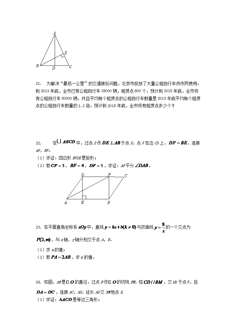 【文档预览】 无忧考网整理发布2015年北京东城中考数学真题及答案(Word版),前五页预览如下: