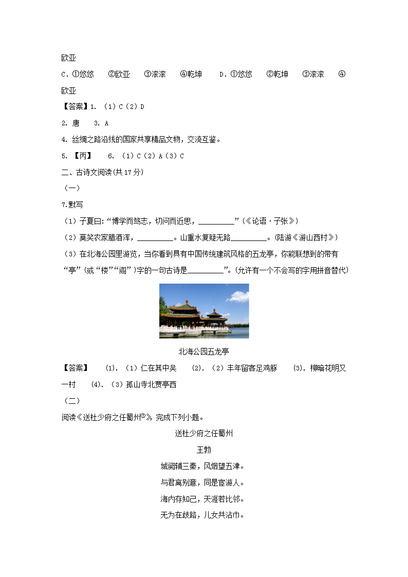【文档预览】 无忧考网整理发布2019年北京崇文中考语文真题及答案(Word版),前五页预览如下:
