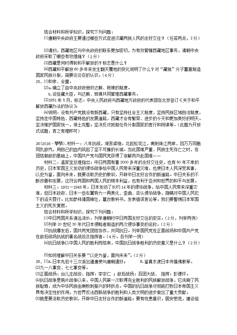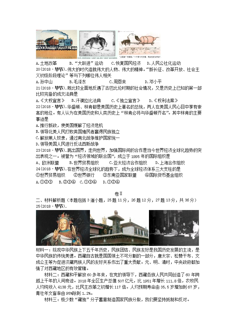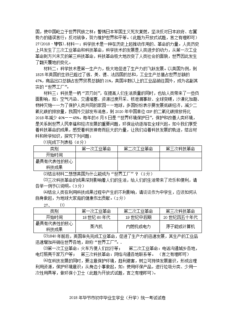 【文档名称】 2018年贵州毕节市中考历史真题及答案(Word版).doc