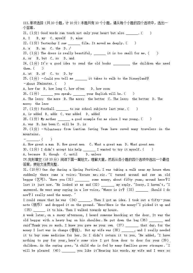 【文档预览】 无忧考网整理发布2016年陕西省安康中考英语真题及答案(Word版),前五页预览如下: