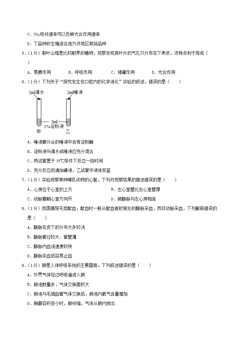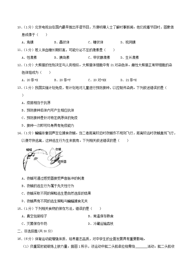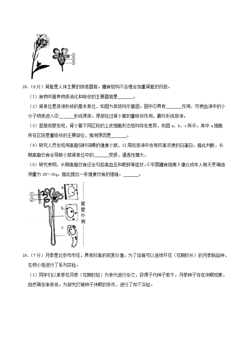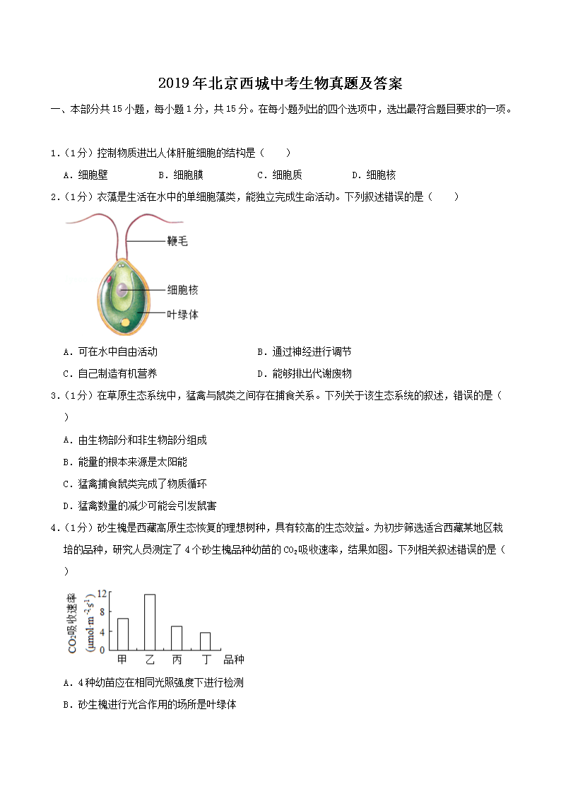 【文档名称】 2019年北京西城中考生物真题及答案(Word版).doc