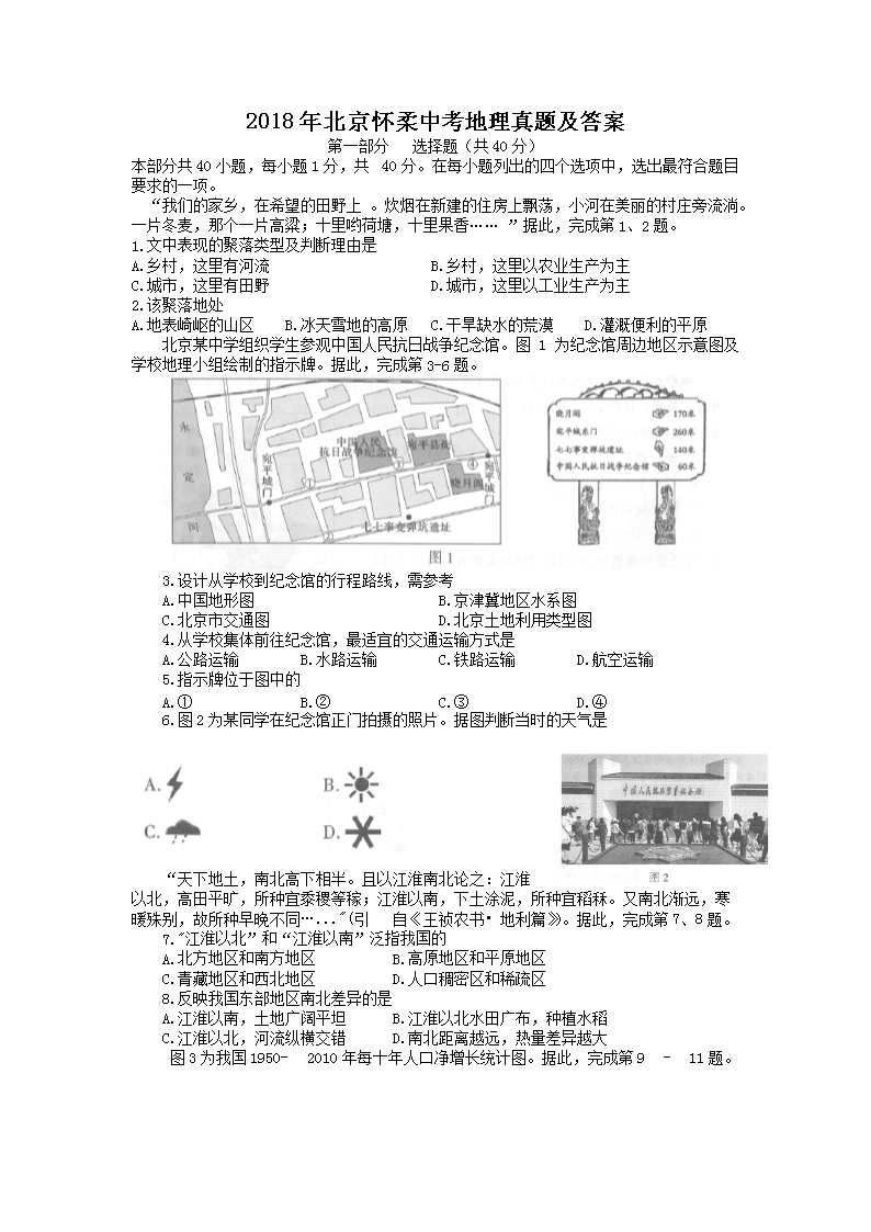 【文档名称】 2018年北京怀柔中考地理真题及答案(Word版).doc