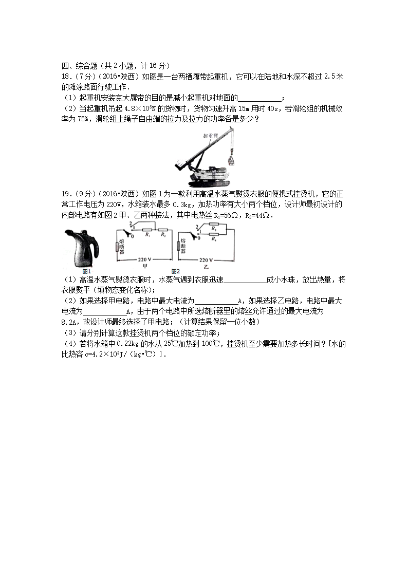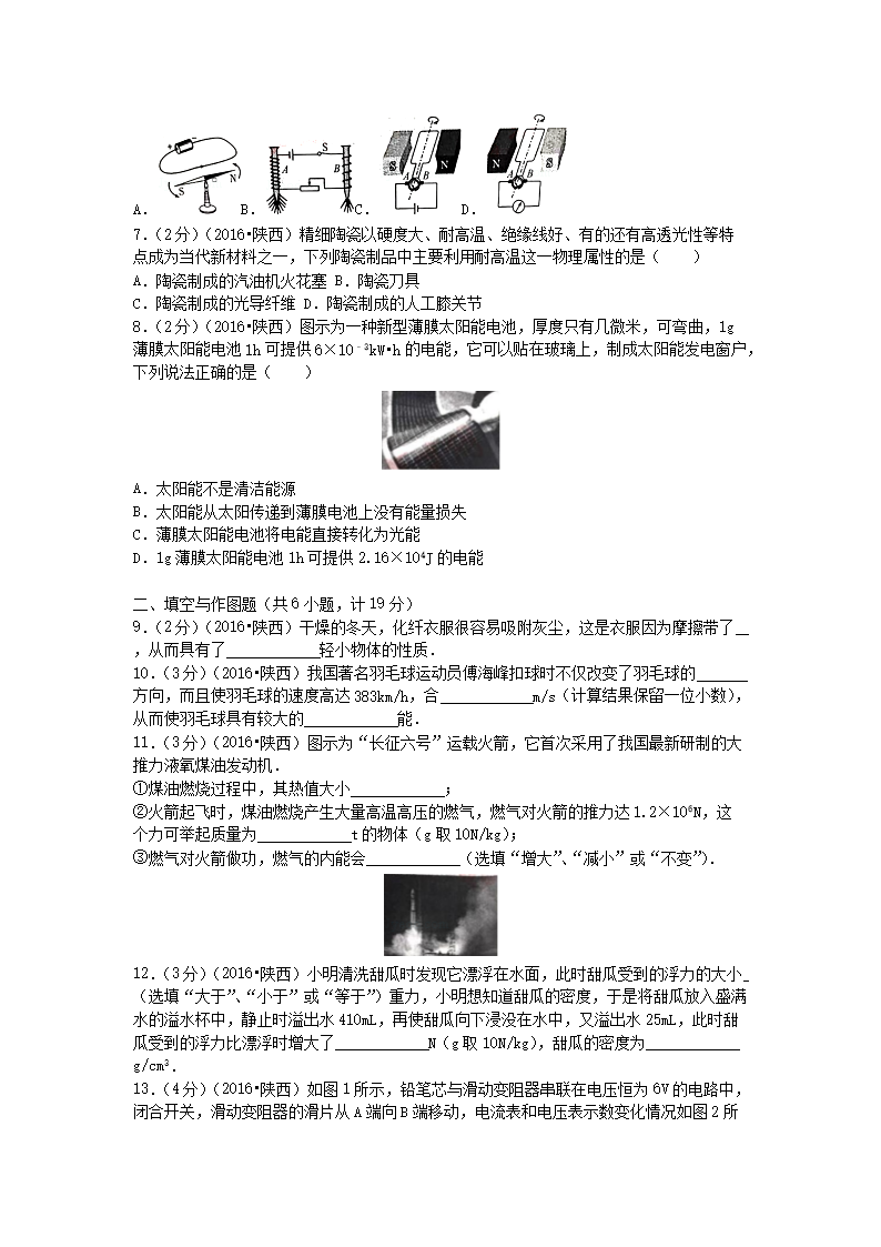 【文档名称】 2016年陕西省安康中考物理真题及答案(Word版).doc