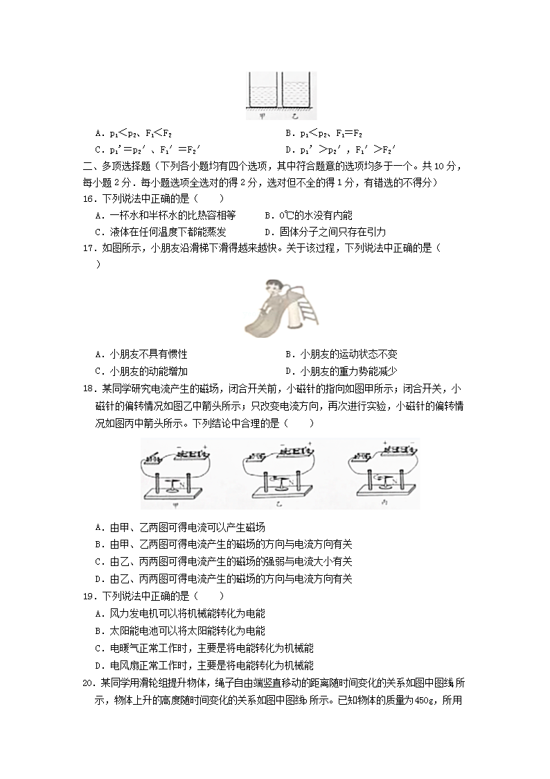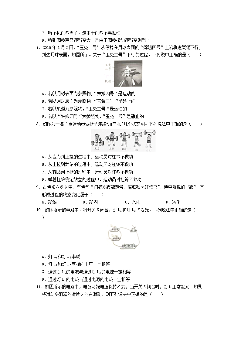 【文档名称】 2019年北京怀柔中考物理真题及答案(Word版).doc