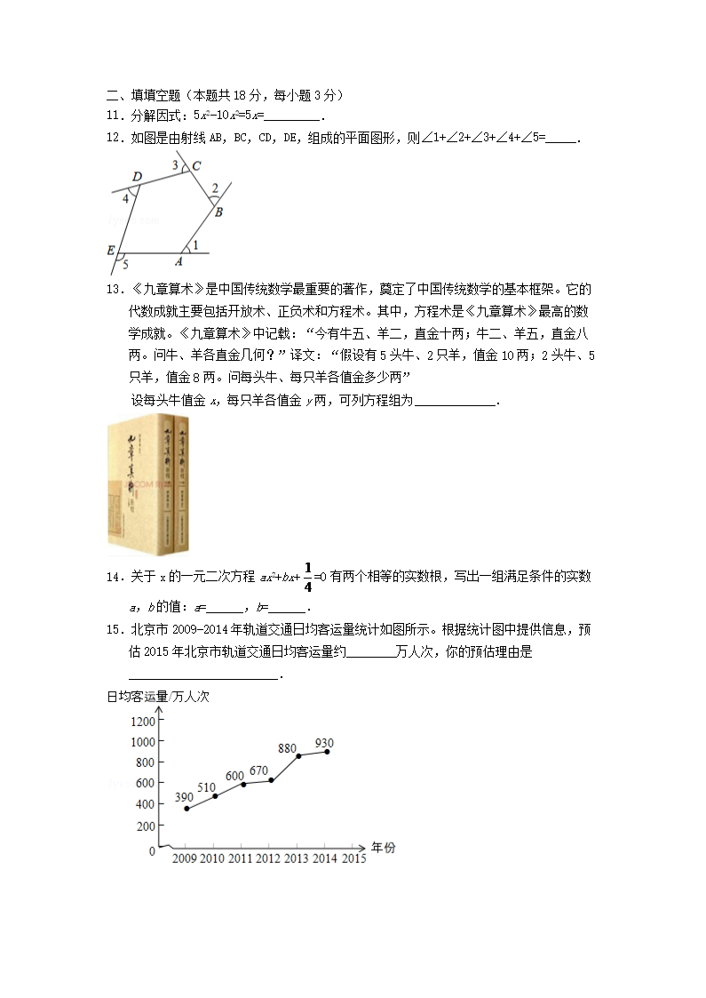 【文档名称】 2015年北京朝阳中考数学真题及答案(Word版).doc
