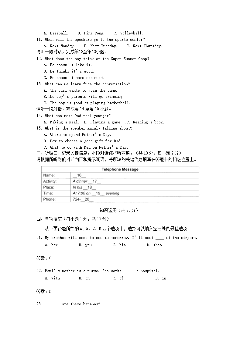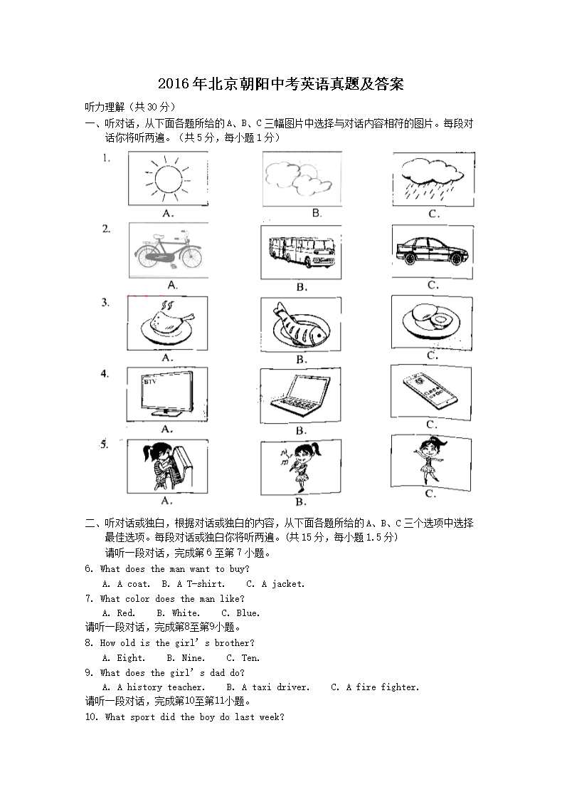 【文档名称】 2016年北京朝阳中考英语真题及答案(Word版).doc