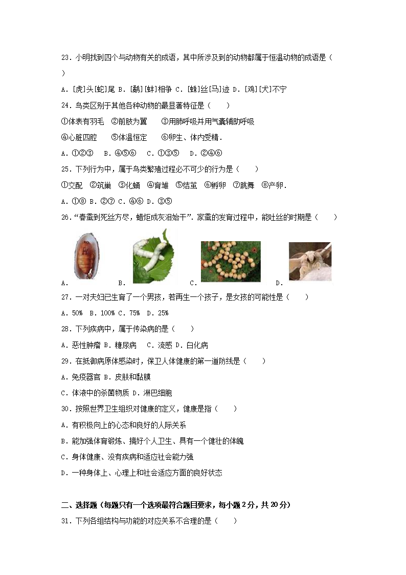 【文档预览】 无忧考网整理发布2017年北京朝阳中考生物真题及答案(Word版),前五页预览如下: