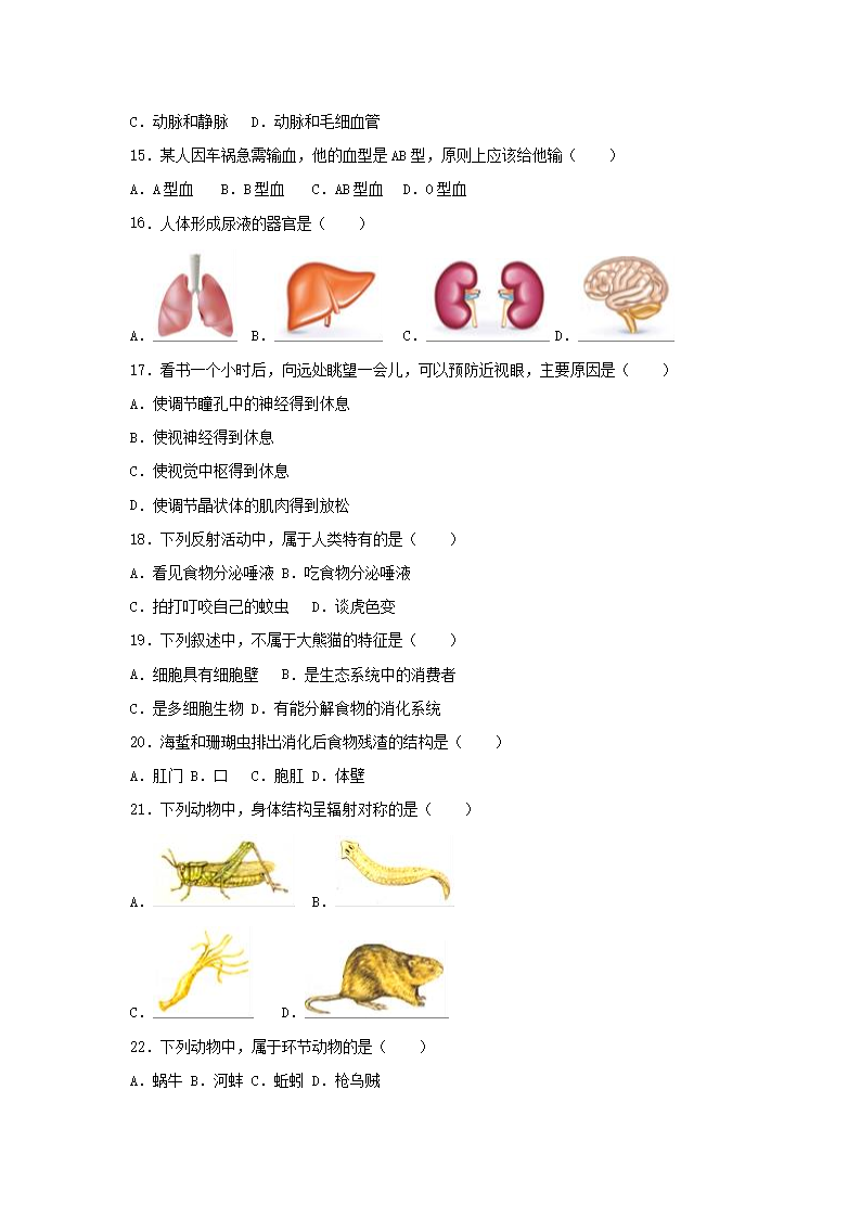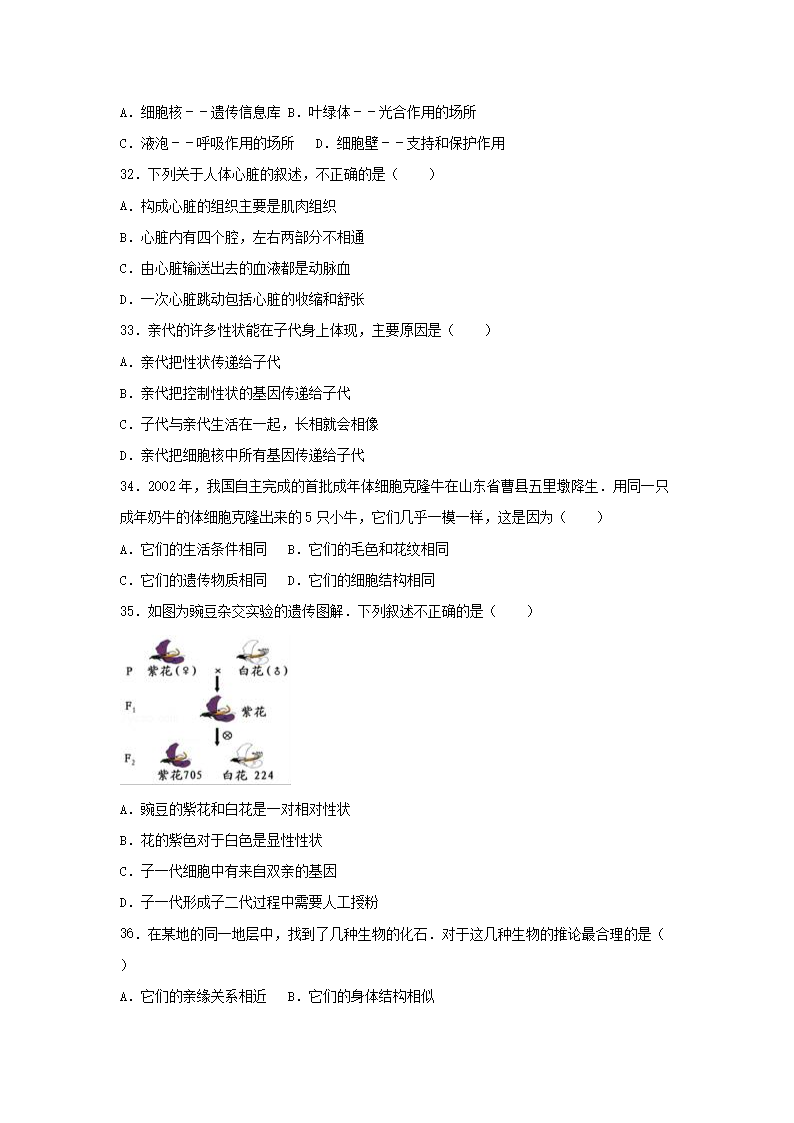 【文档名称】 2017年北京朝阳中考生物真题及答案(Word版).doc