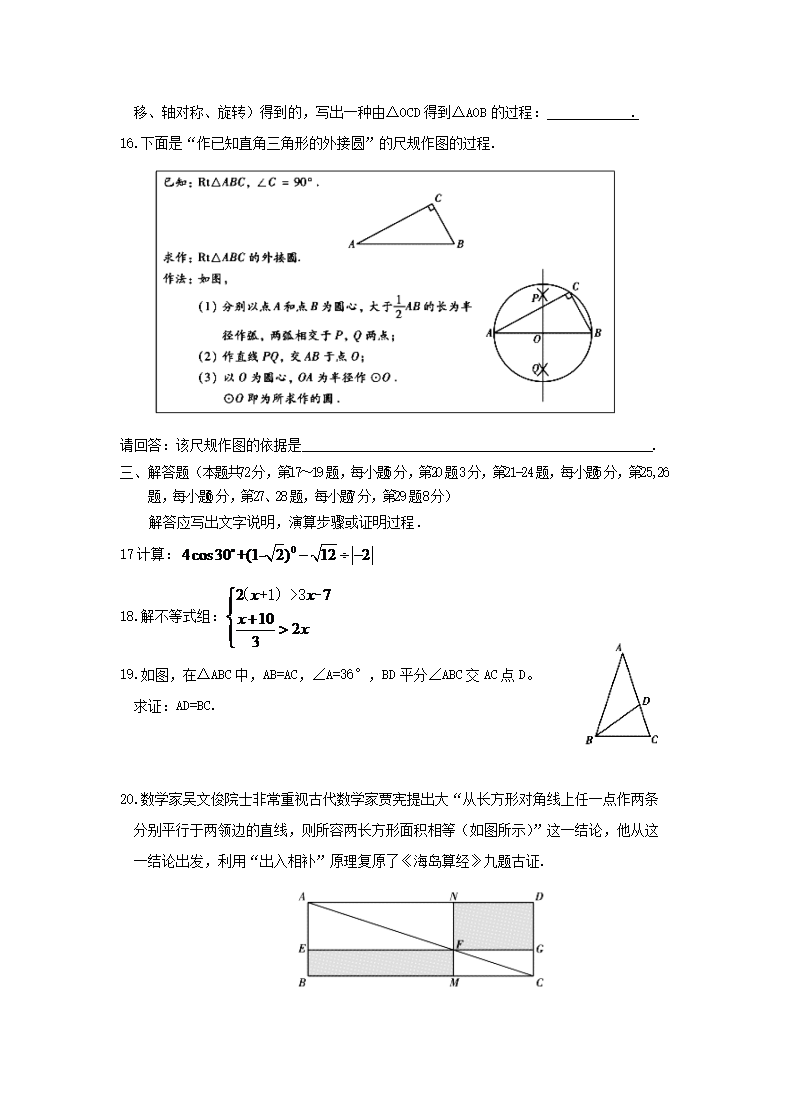 【文档预览】 无忧考网整理发布2017年北京朝阳中考数学真题及答案(Word版),前五页预览如下: