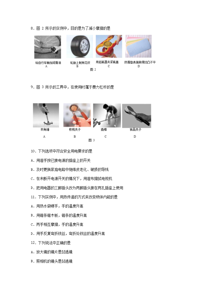 【文档名称】 2017年北京朝阳中考物理真题及答案(Word版).doc