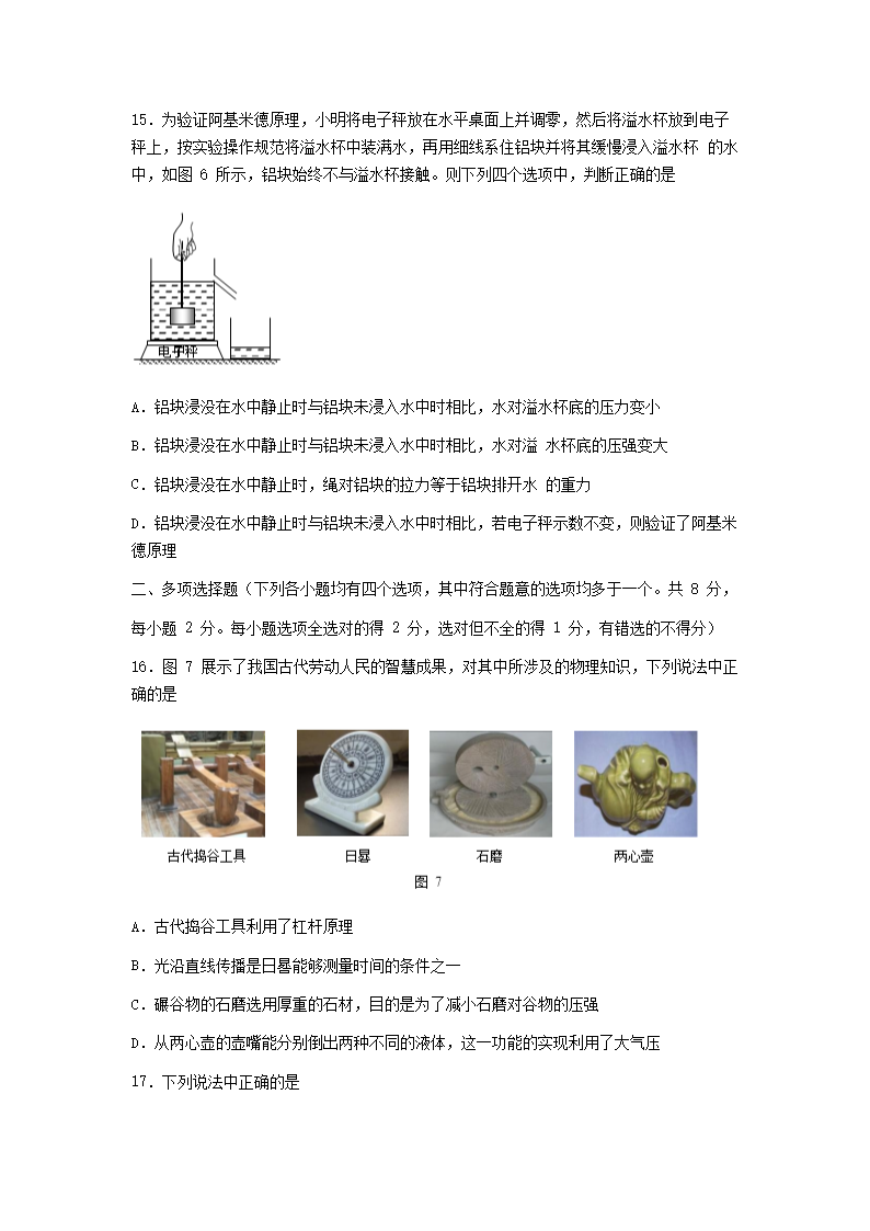 【文档预览】 无忧考网整理发布2017年北京朝阳中考物理真题及答案(Word版),前五页预览如下: