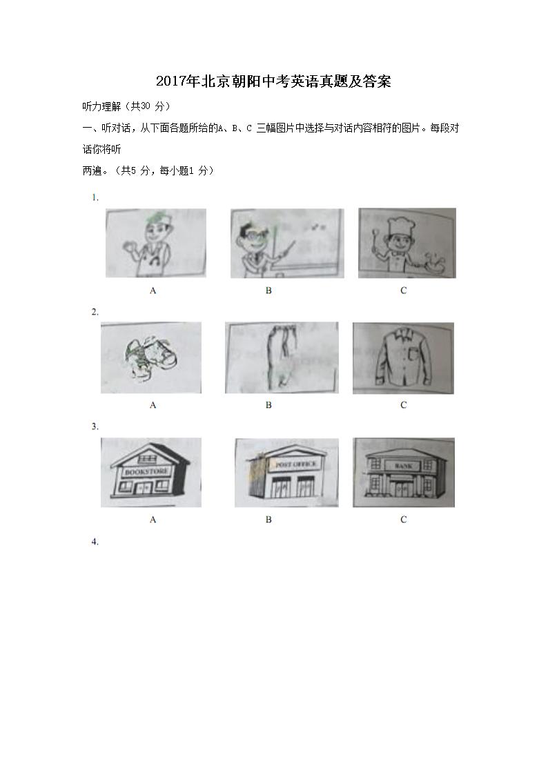 【文档名称】 2017年北京朝阳中考英语真题及答案(Word版).doc