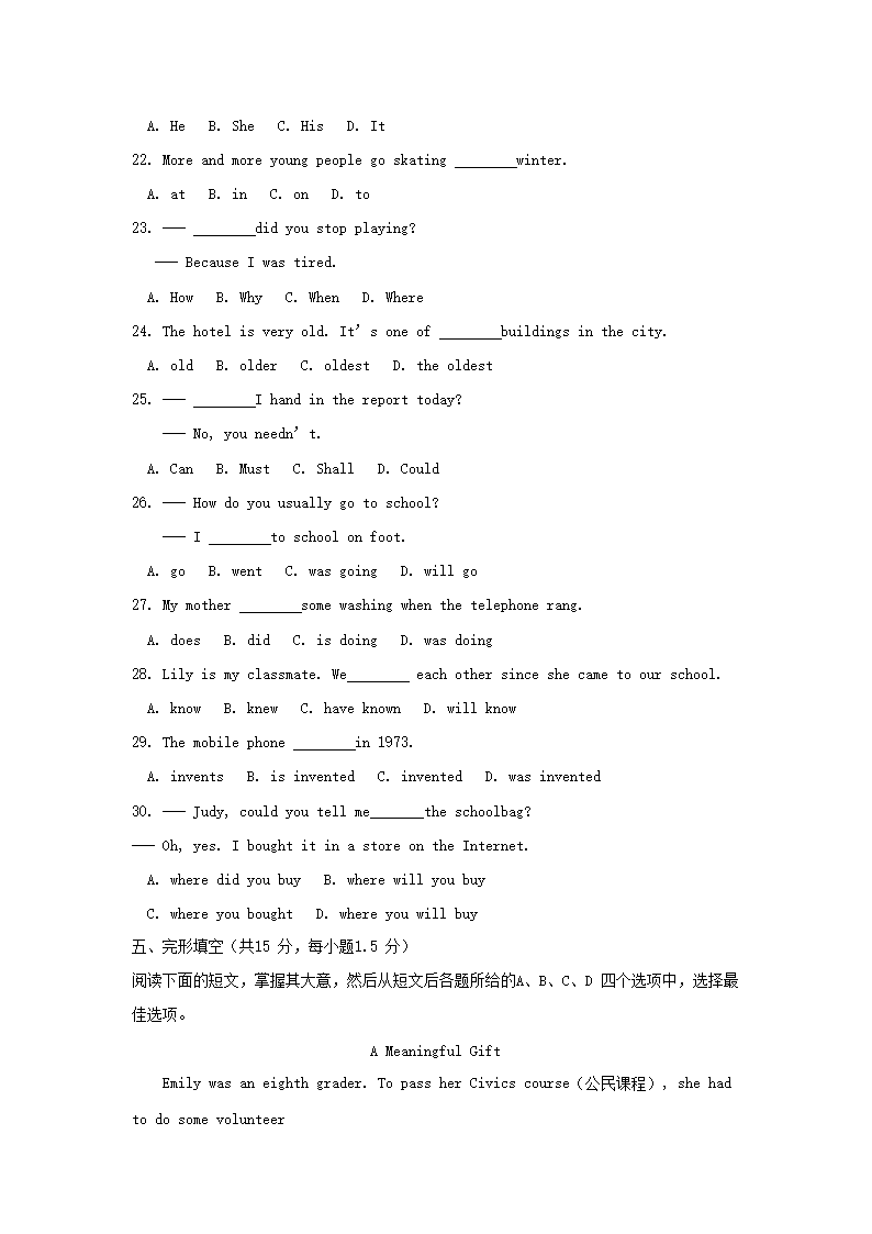 【文档预览】 无忧考网整理发布2017年北京朝阳中考英语真题及答案(Word版),前五页预览如下: