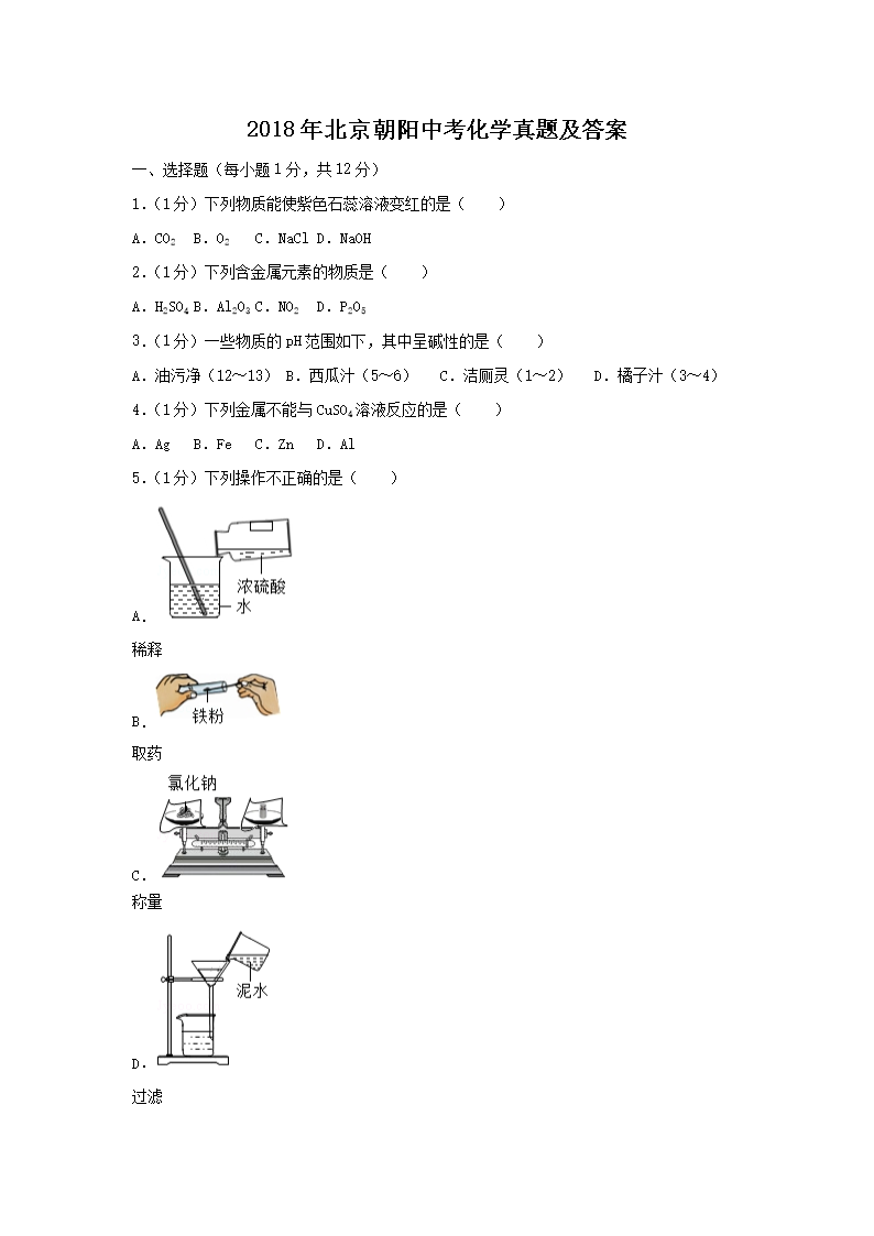 【文档名称】 2018年北京朝阳中考化学真题及答案(Word版).doc