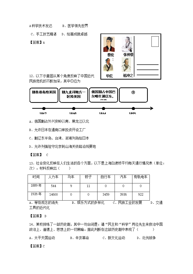 【文档名称】 2018年北京朝阳中考历史真题及答案(Word版).doc