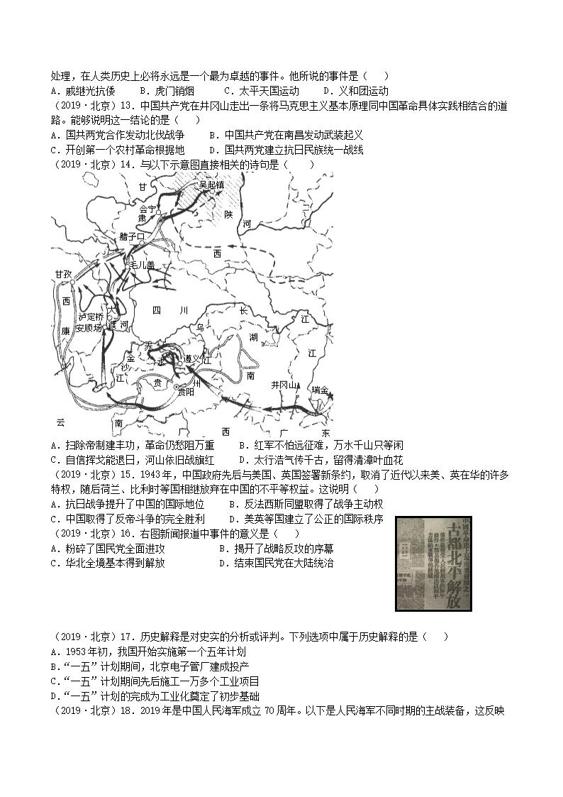 【文档名称】 2019年北京朝阳中考历史真题及答案(Word版).doc