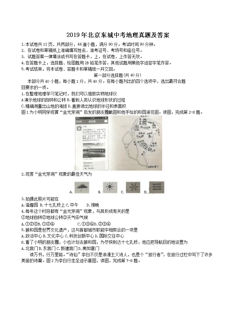 【文档预览】 无忧考网整理发布2019年北京东城中考地理真题及答案(Word版),前五页预览如下: