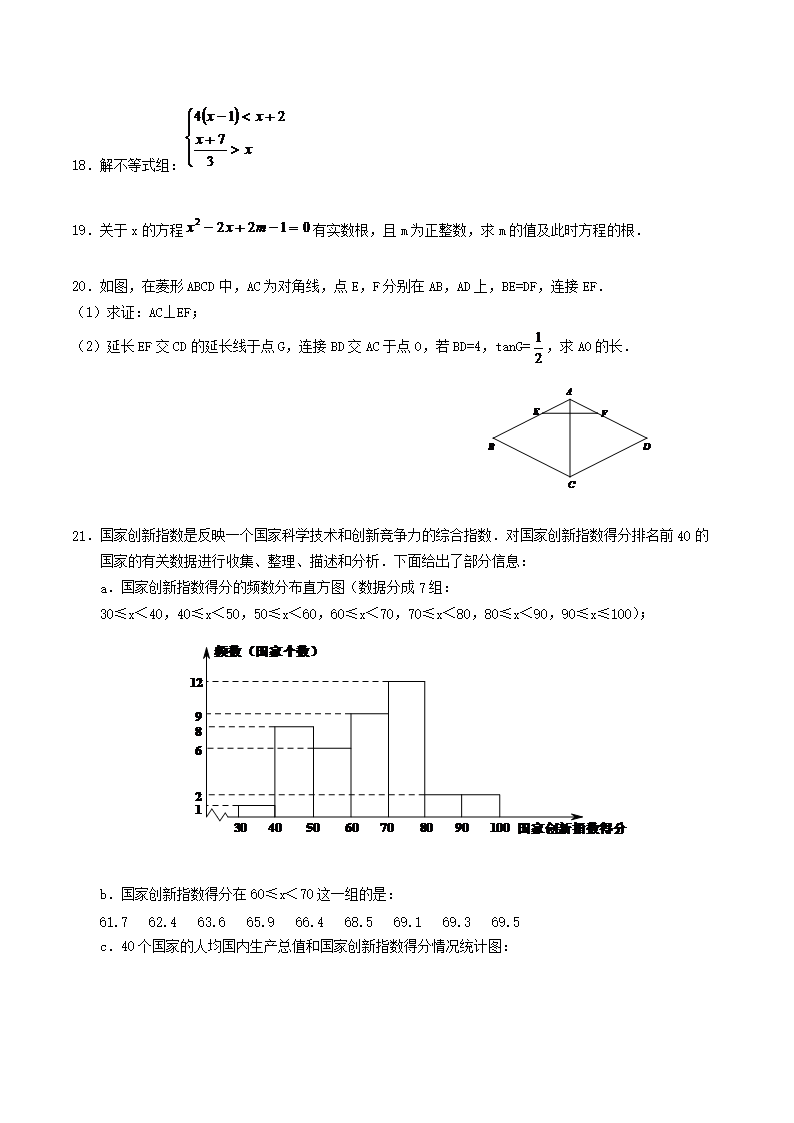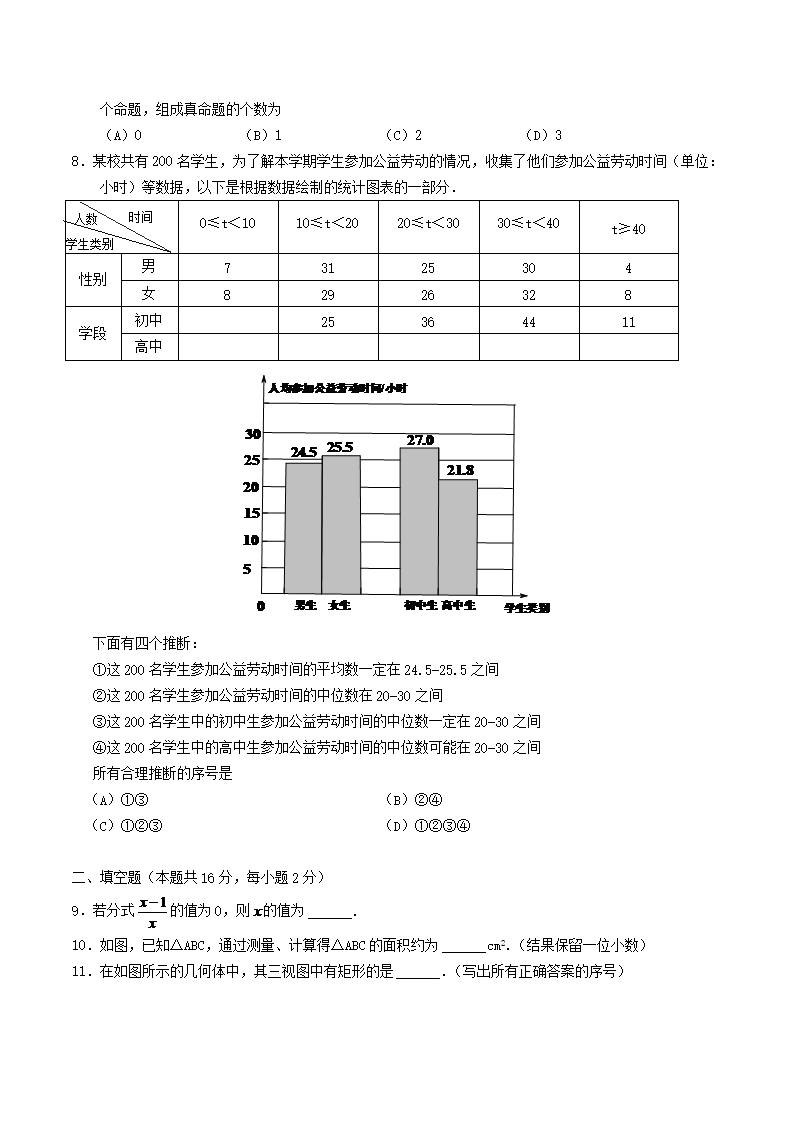 【文档名称】 2019年北京朝阳中考数学真题及答案(Word版).doc