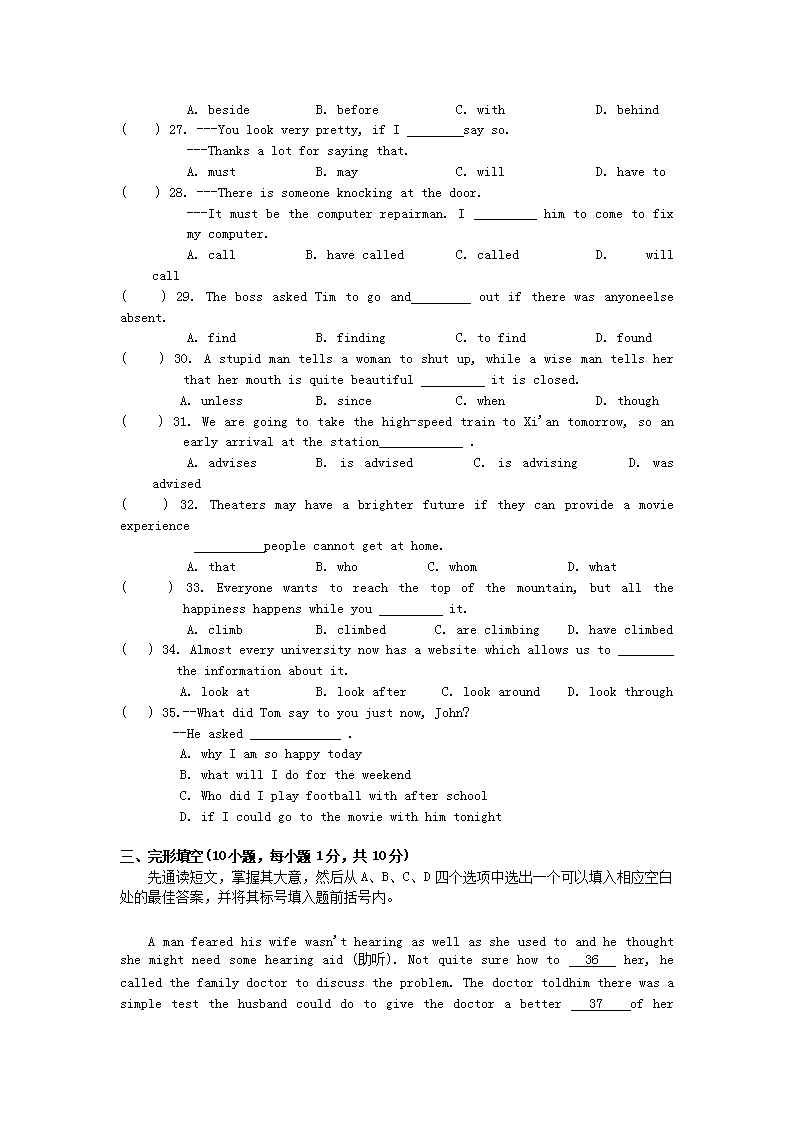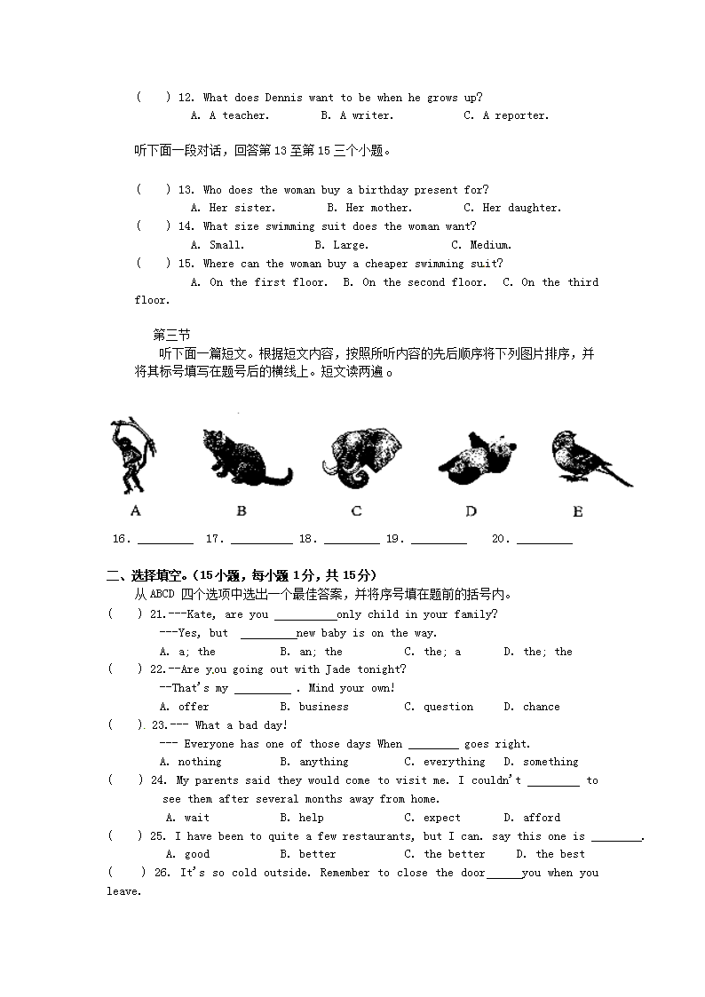 【文档预览】 无忧考网整理发布2016年河南平顶山中考英语真题及答案(Word版),前五页预览如下: