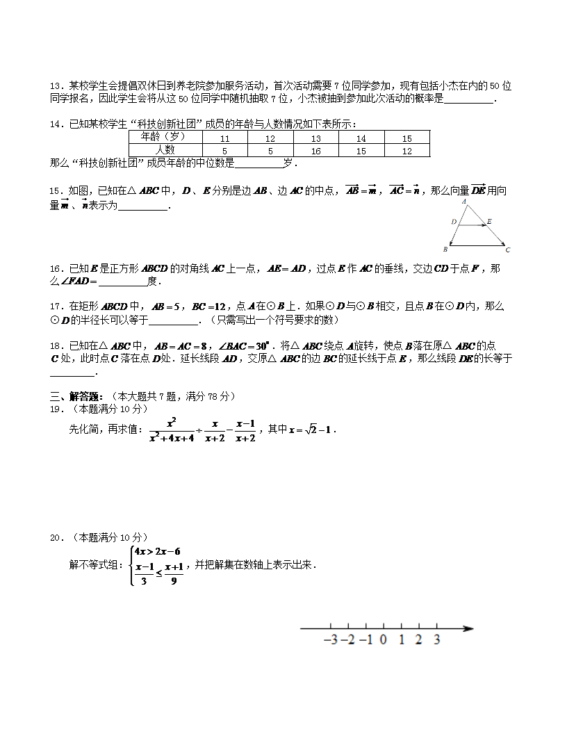 【文档名称】 2015年上海普陀中考数学真题及答案(Word版).doc