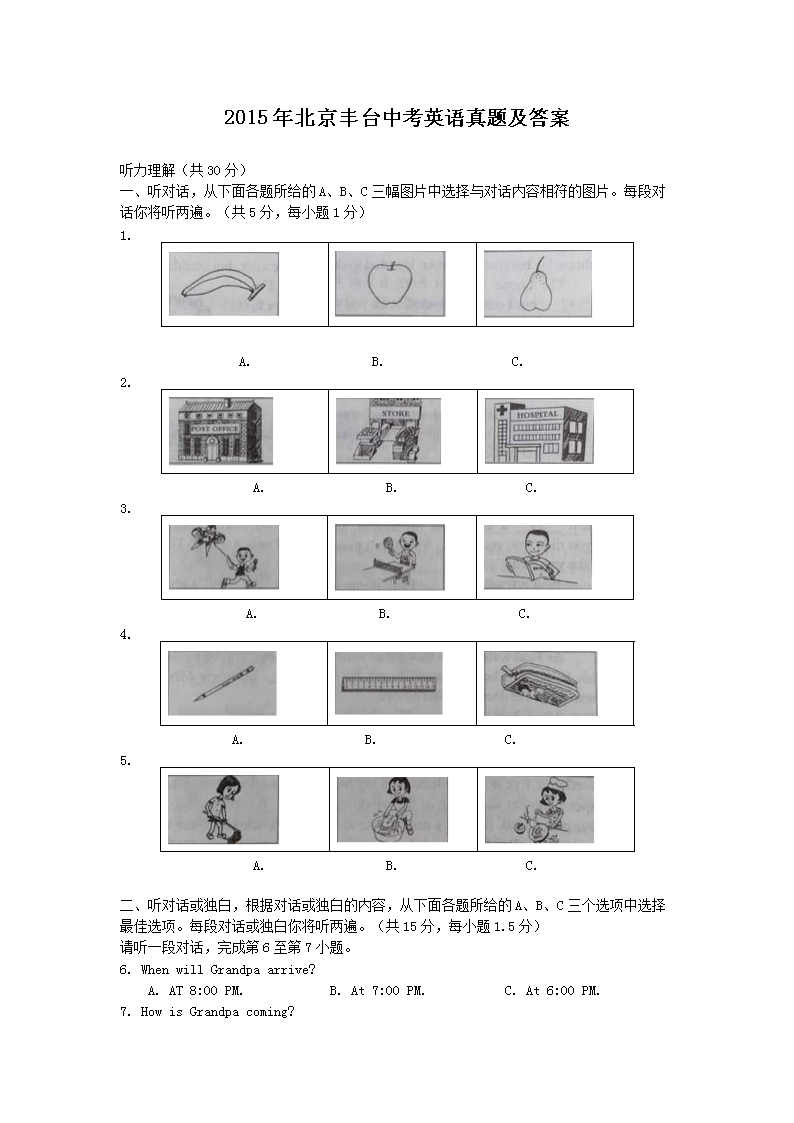 【文档名称】 2015年北京丰台中考英语真题及答案(Word版).doc