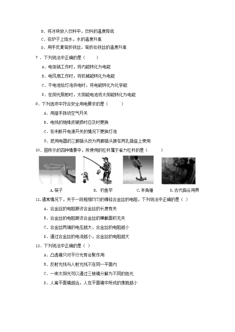 【文档名称】 2015年北京大兴中考物理真题及答案(Word版).doc
