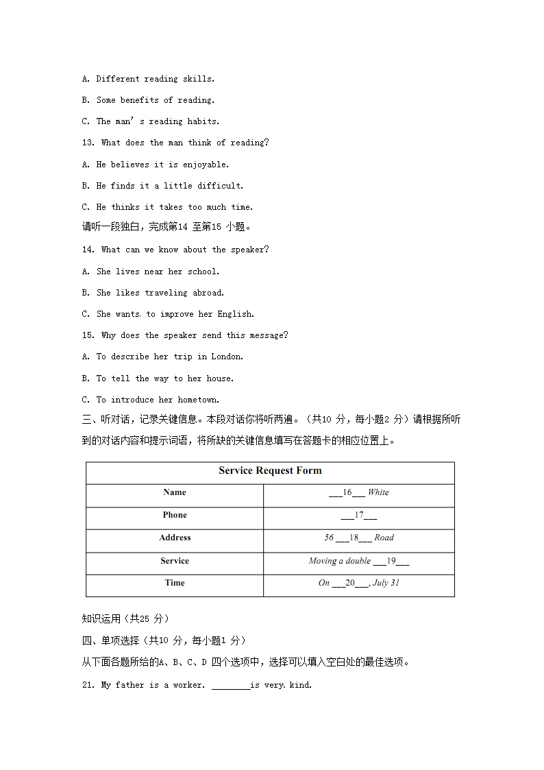 【文档预览】 无忧考网整理发布2017年北京丰台中考英语真题及答案(Word版),前五页预览如下: