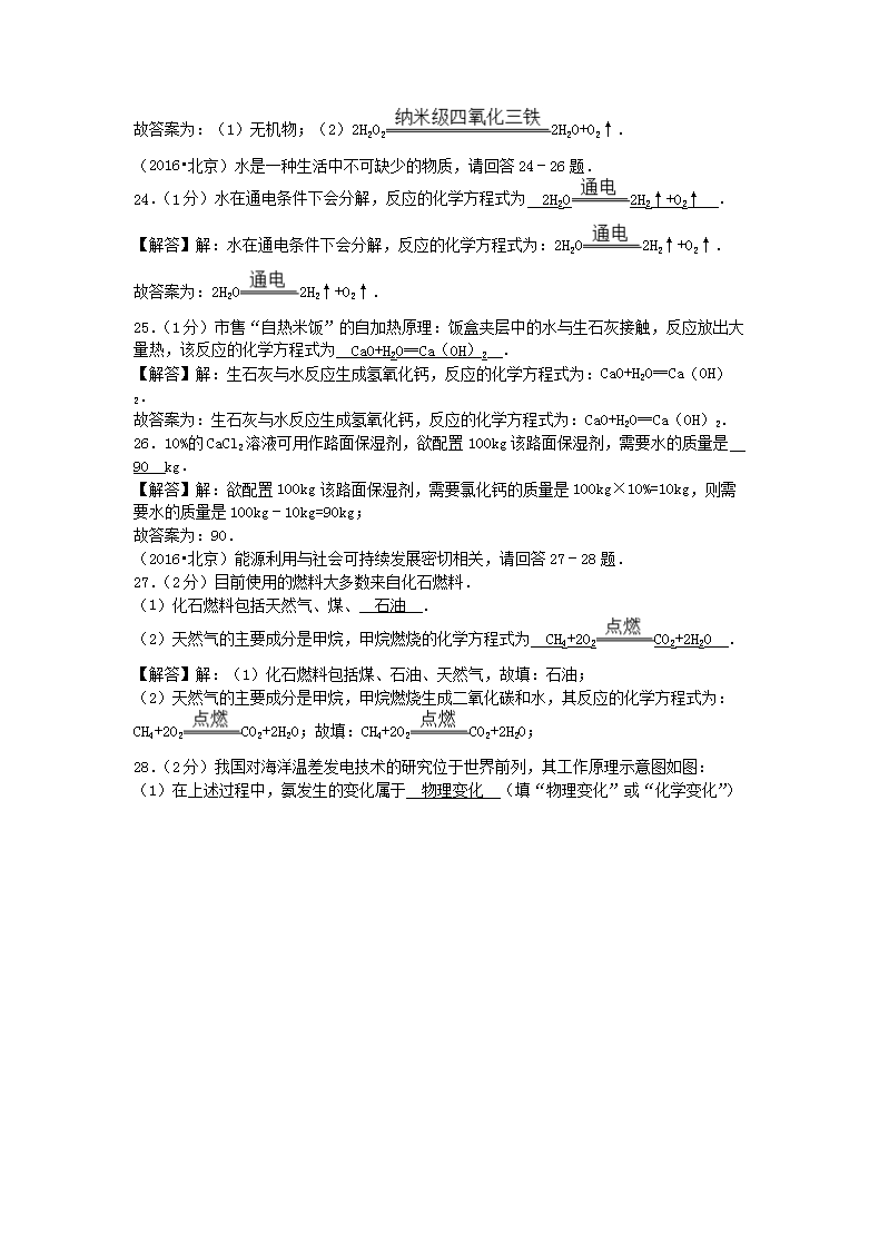 【文档名称】 2016年北京大兴中考化学真题及答案(Word版).doc